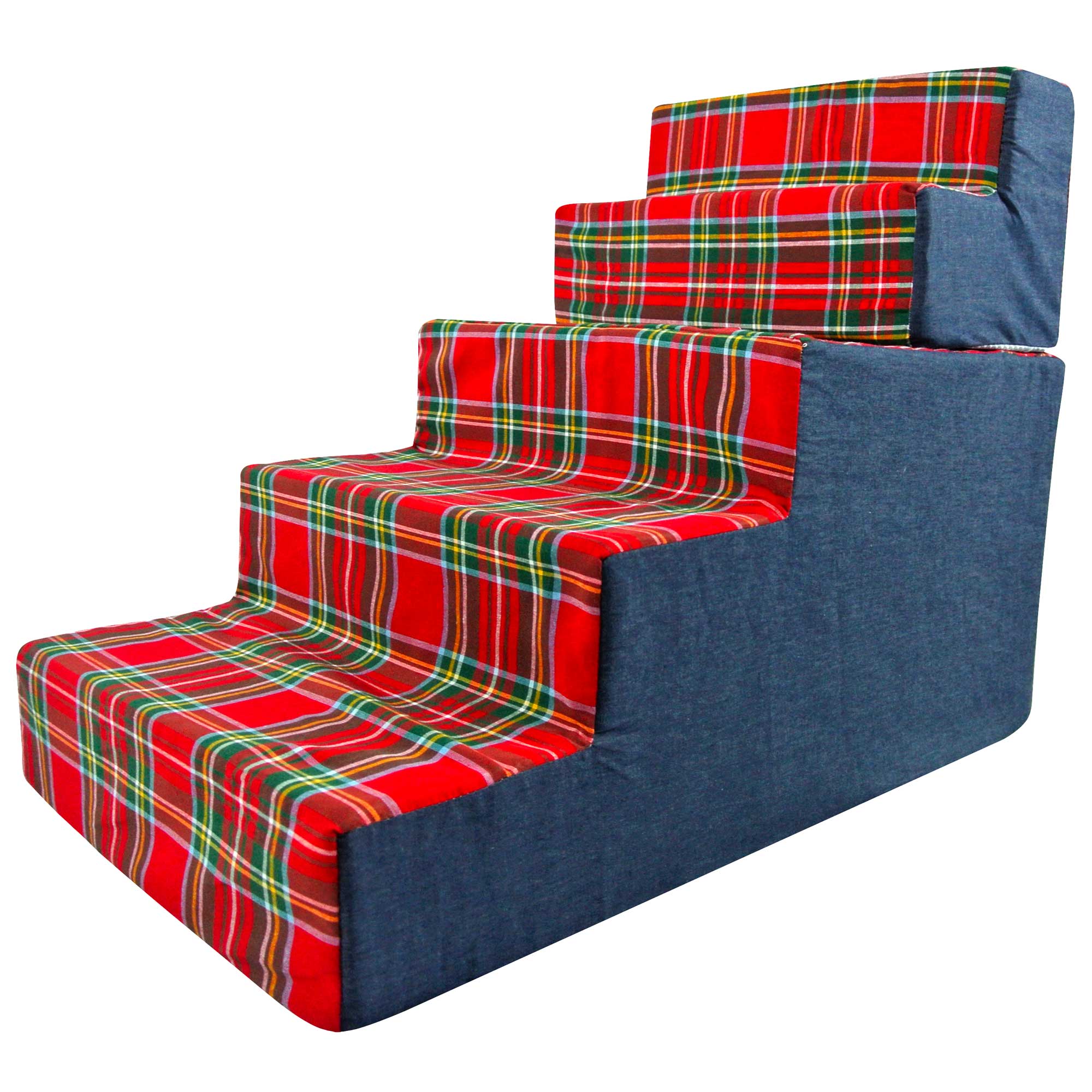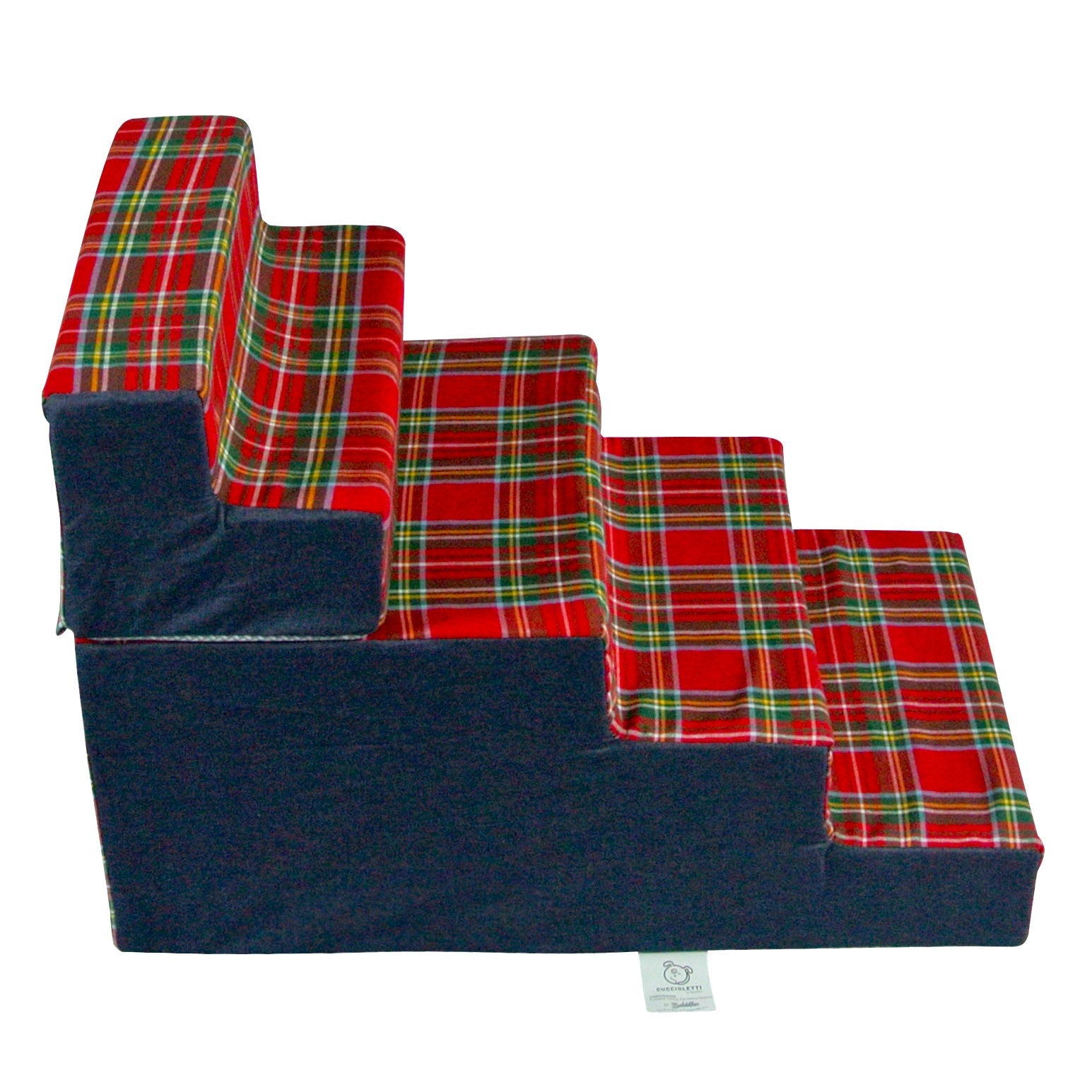 La scaletta cani e gatti è ideata come un gioco ed è composta da due blocchi uniti con una zip: l'ultimo scalino può essere assemblato o smontato a seconda delle esigenze. La scaletta cani può essere utilizzata ovunque ed è facilmente spostabile poiché molto leggera. È indicata anche per i cani e i gatti anziani: permette loro una salita agevole grazie all’altezza comoda degli scalini. La fodera a fantasia scozzese è rimovibile e lavabile.