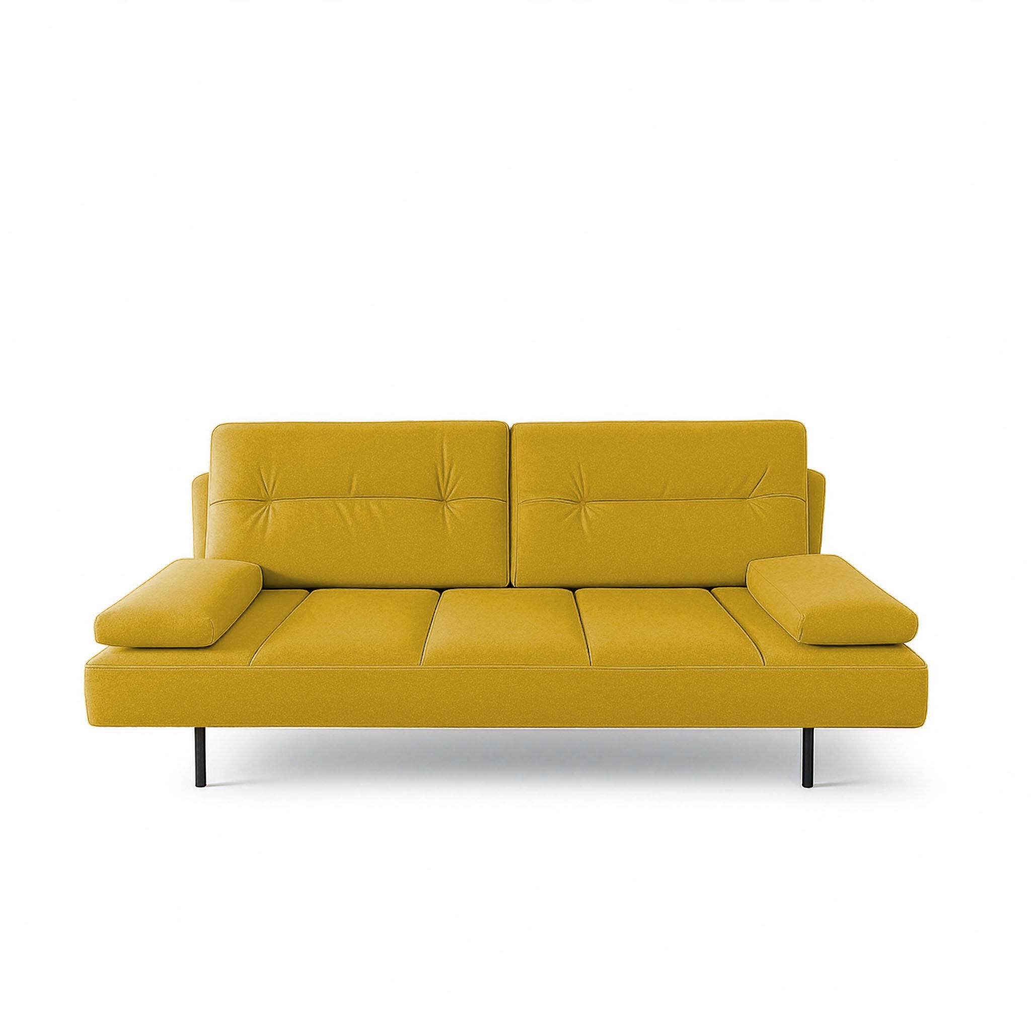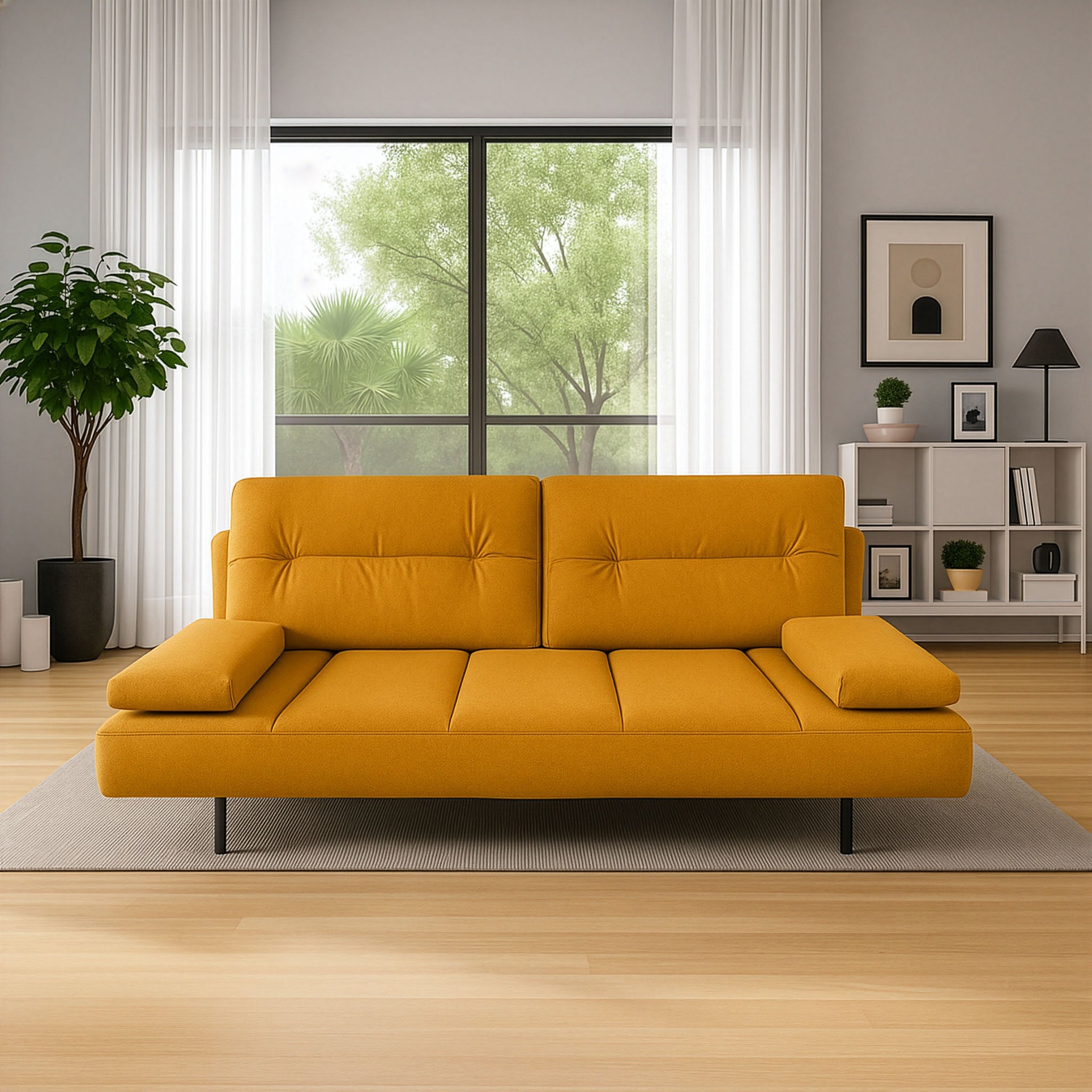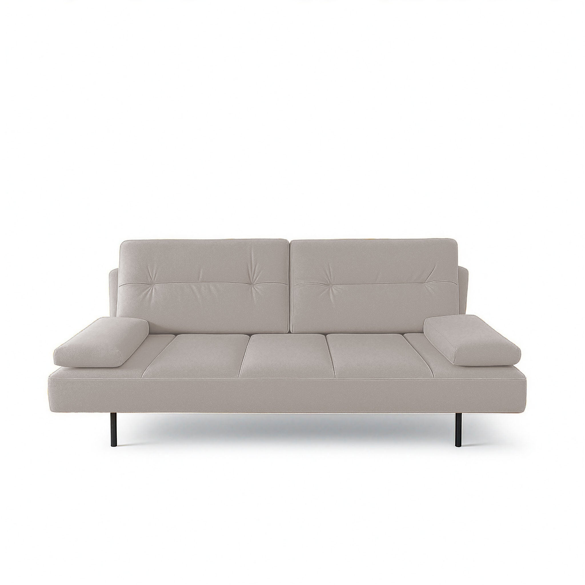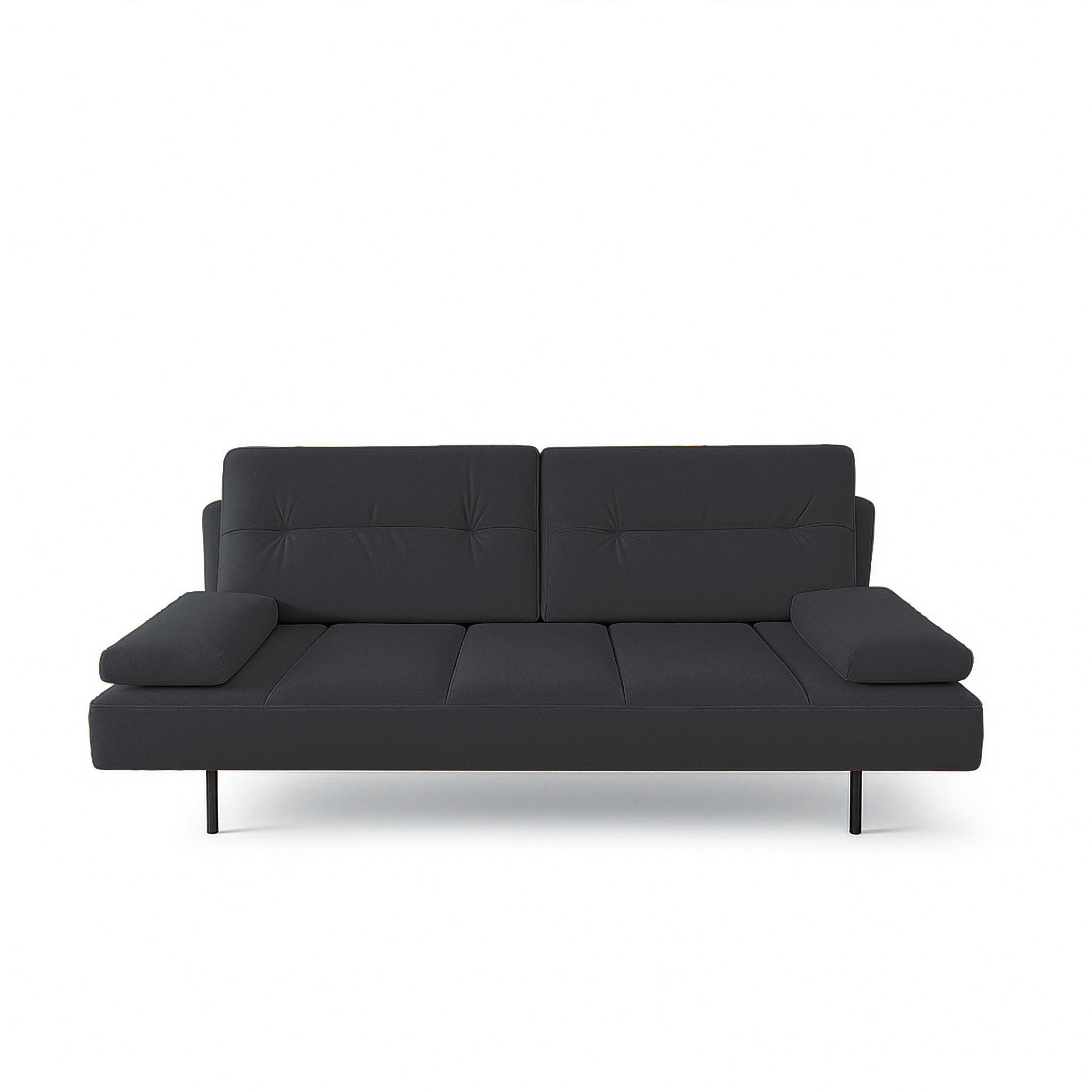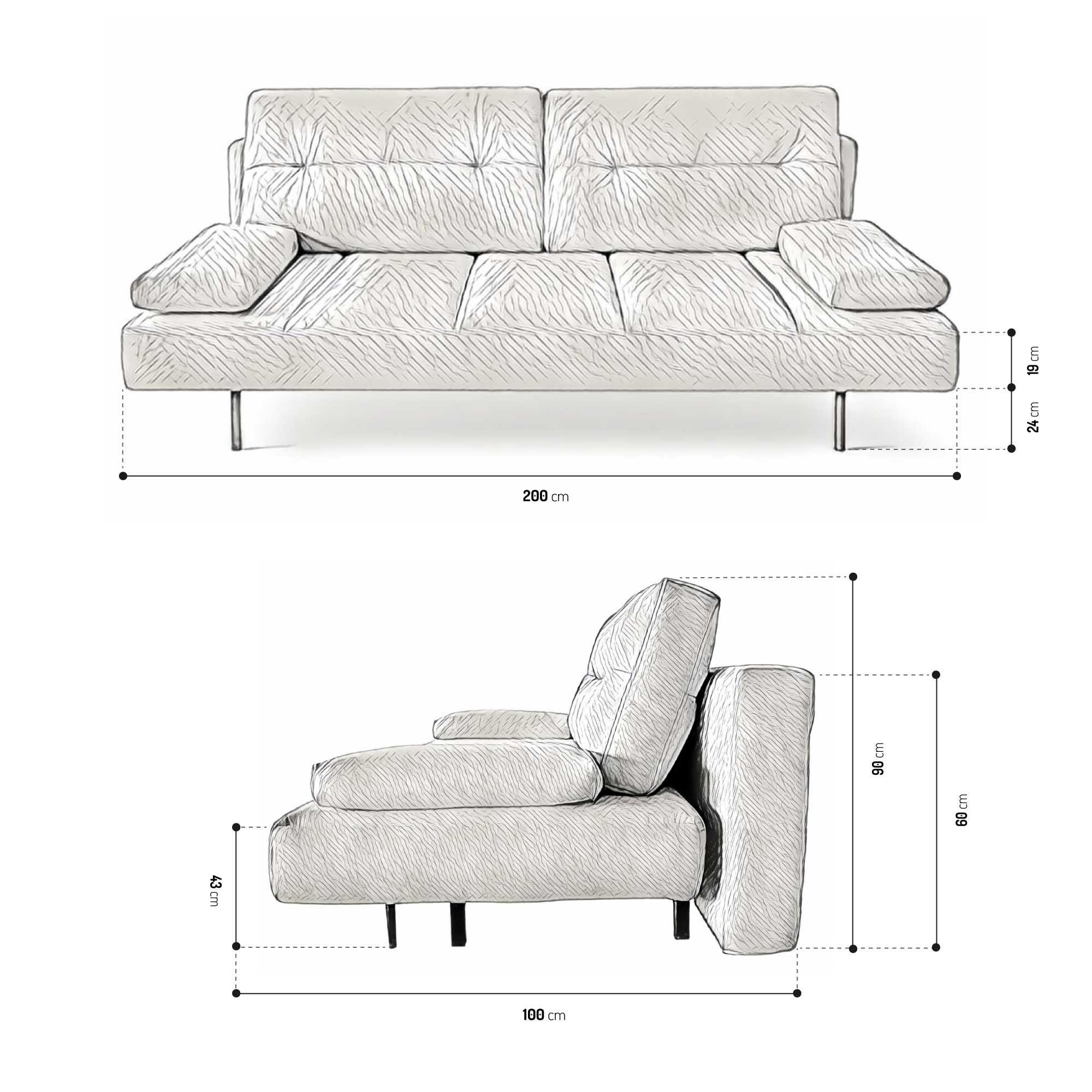 Con un semplice movimento, lo schienale si abbassa trasformando il divano in un comodo letto matrimoniale, ideale per ospiti o per un uso quotidiano. I braccioli imbottiti sono rimovibili, offrendo maggiore versatilità e spazio quando serve.