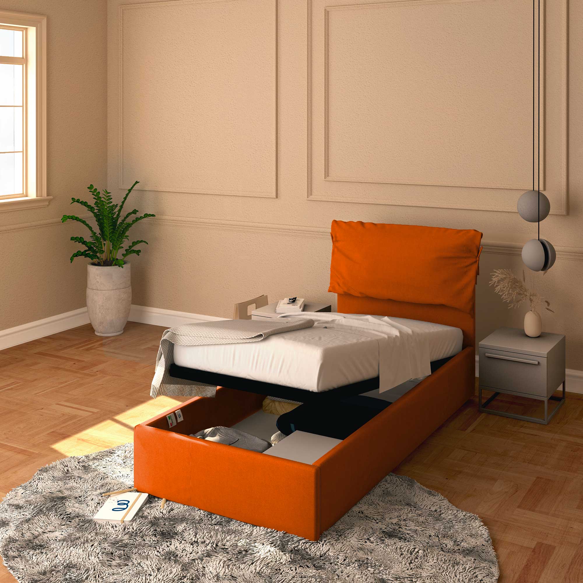 Letto contenitore singolo in tessuto sfoderabile Licia Soft