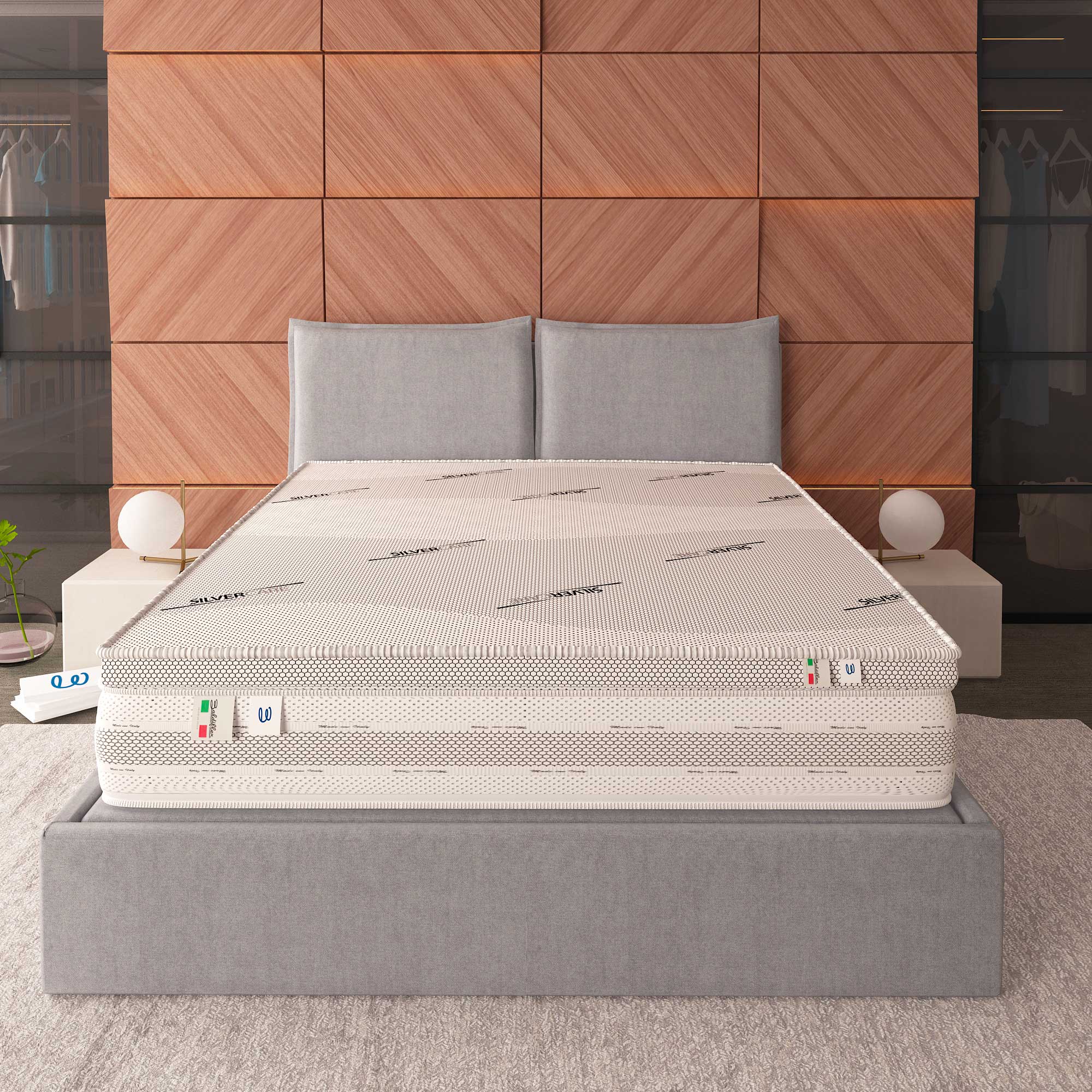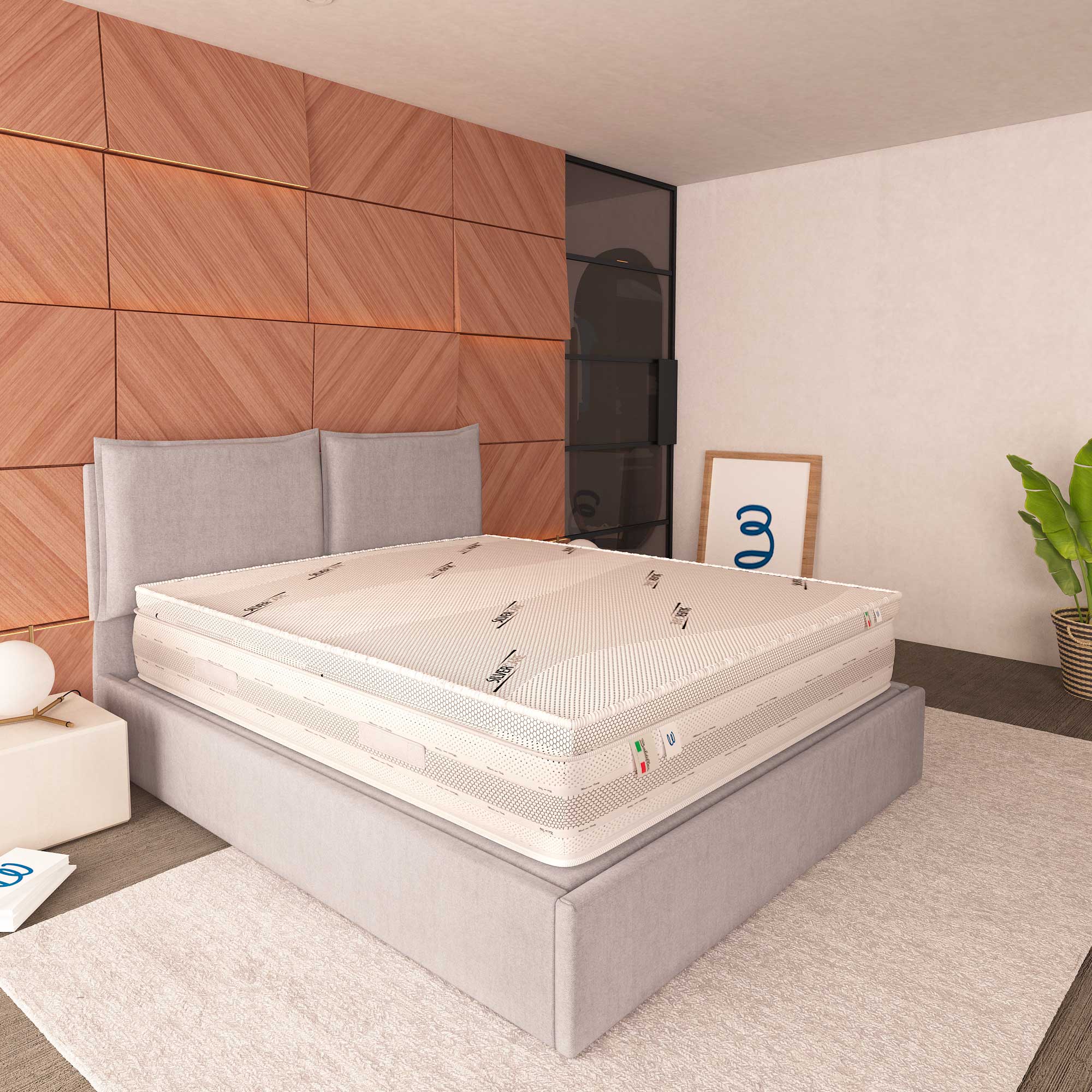 - 1° strato: topper 5 cm in memory fresh a densità 55-60, schiuma innovativa ultra-traspirante per garantire freschezza