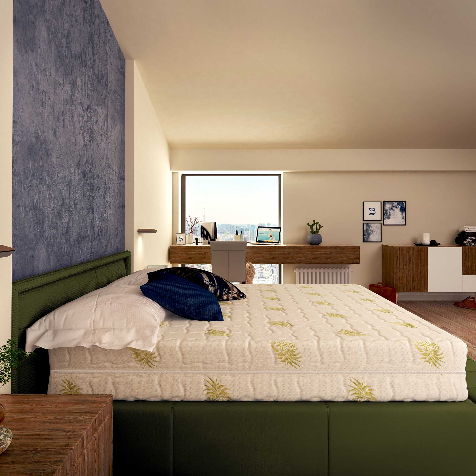 Il materasso Super Dream presenta un sostegno ergonomico grazie ad i 7 cm di memory. La lavorazione del memory bugnato dona al materasso un effetto automassaggiante. La lastra sottostante in poliuretano è ottenuta dalla miscelazione di due componenti dei quali l'agente espandente è l'acqua, questo lo rende traspirante. La fodera del materasso è sfoderabile tramite comoda zip. Il trattamento è in aloe vera rigenerante e antinfiammatorio.