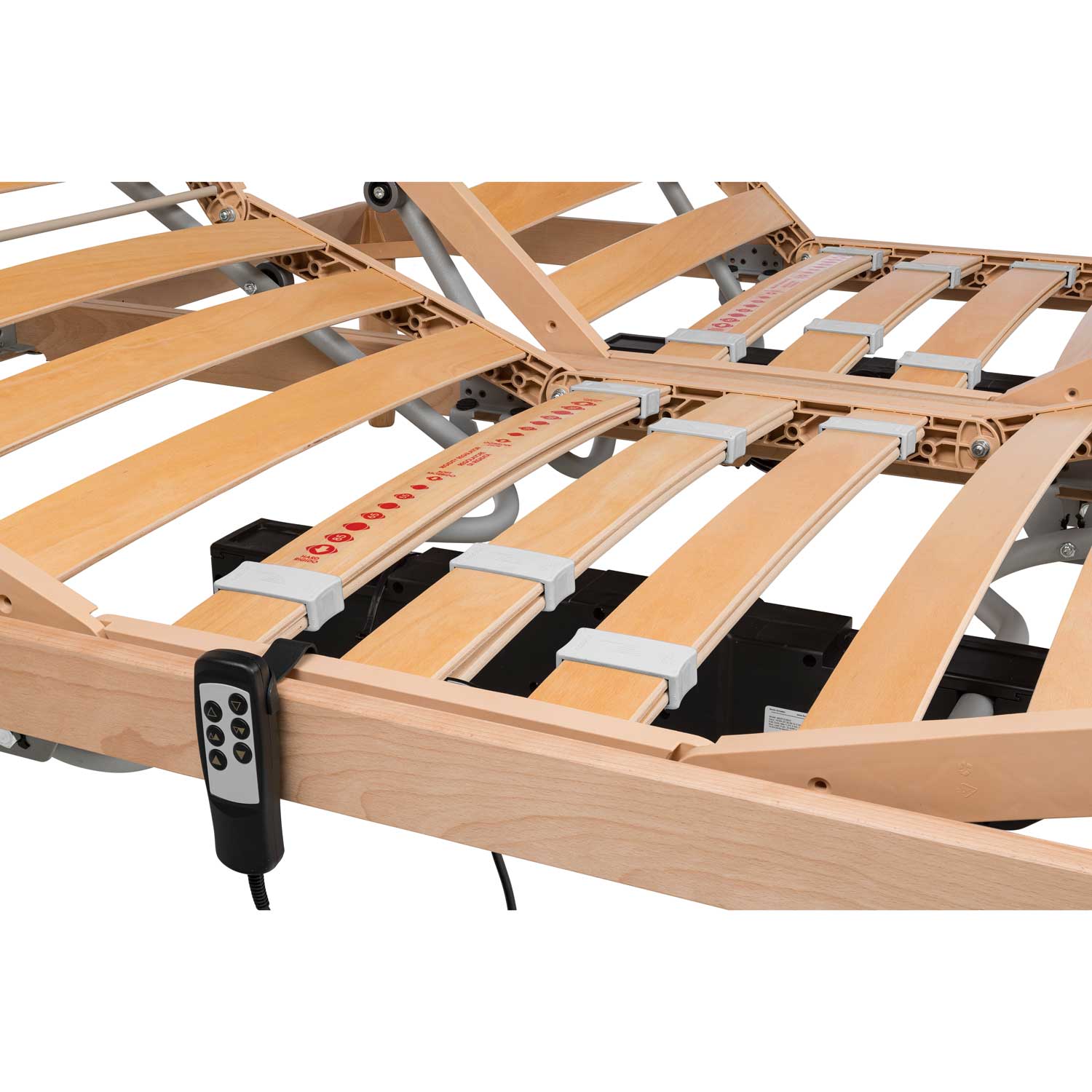 Un piano di riposo particolarmente rigido grazie a doghe larghe 68 mm. Disponibile anche con regolatori di rigidità che consentono di variare la portanza nella zona lombare. Questa rete è un prodotto certificato come dispositivo medico classe 1 direttiva 2007/47/CE ed è detraibile al 19% come spesa sanitaria.