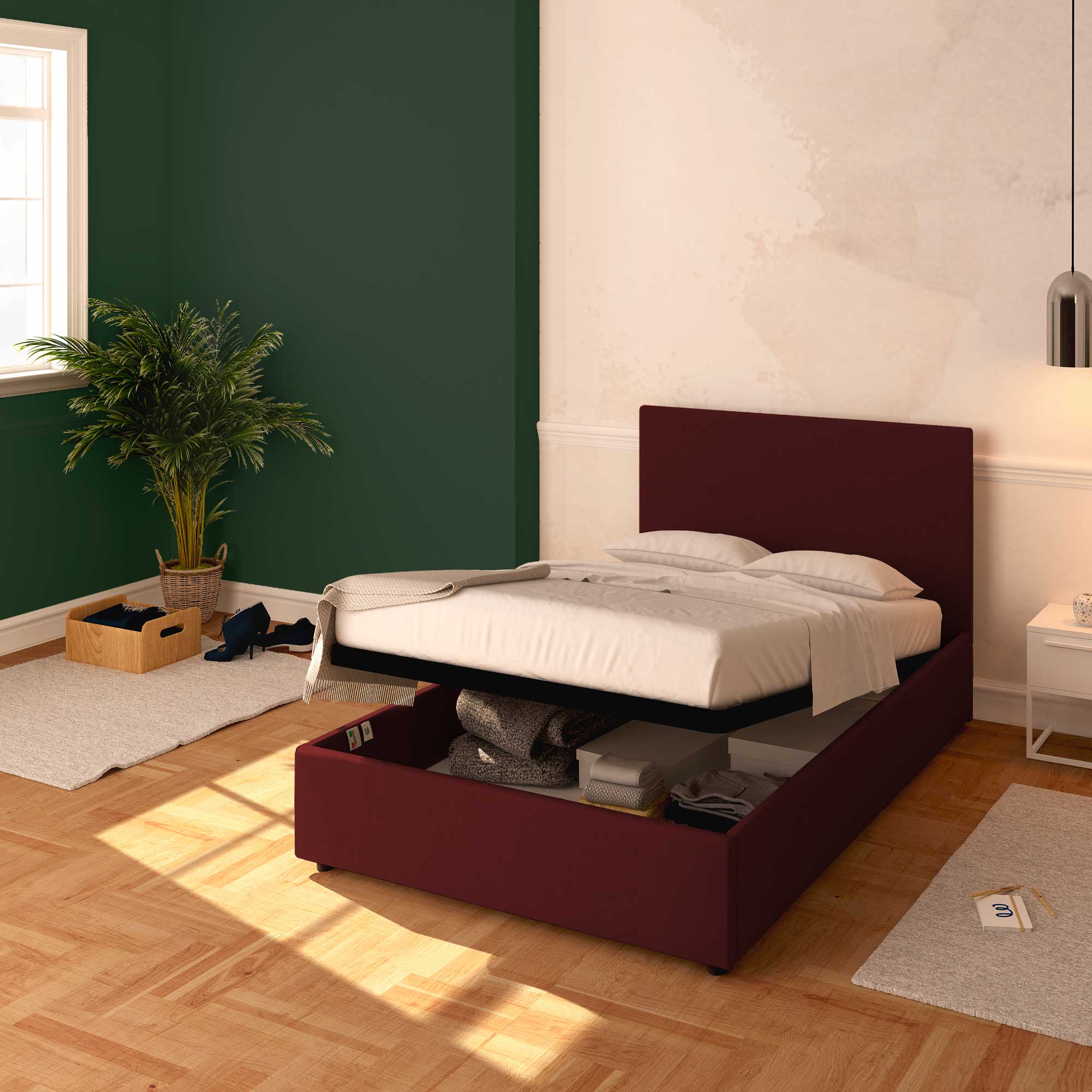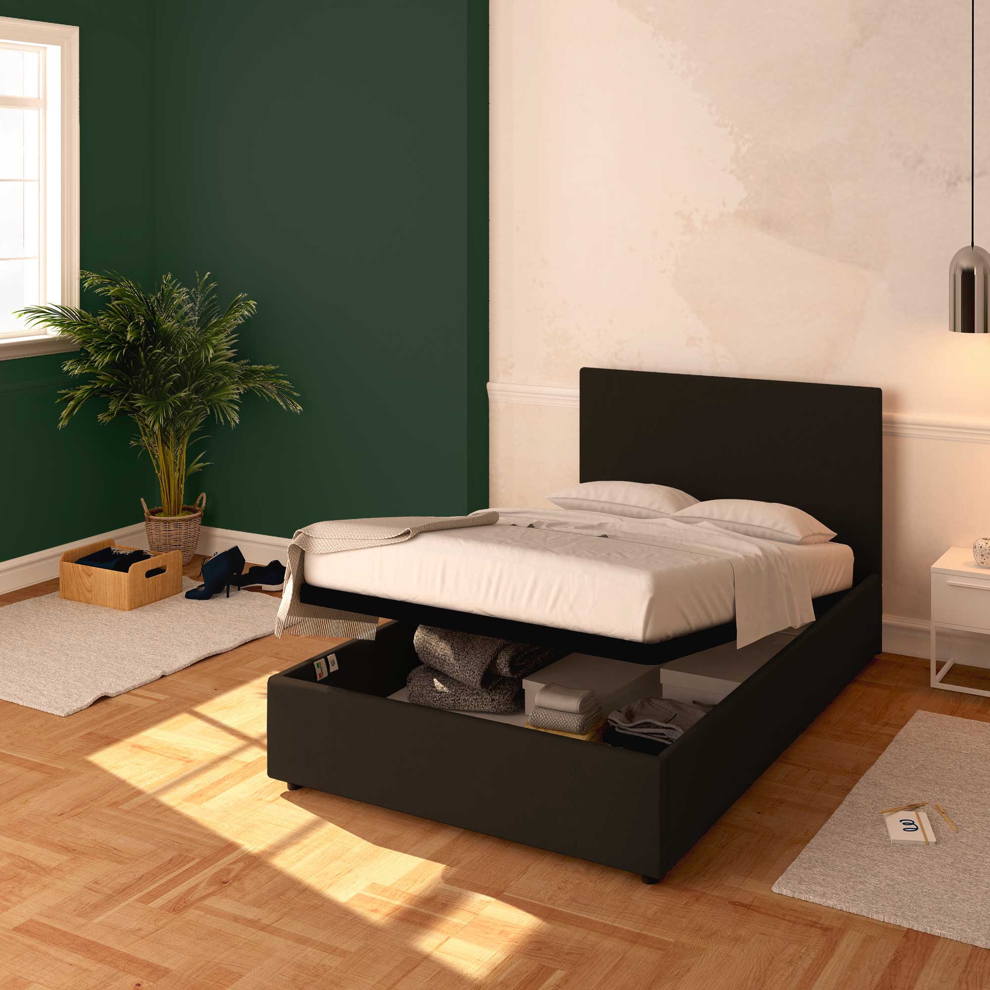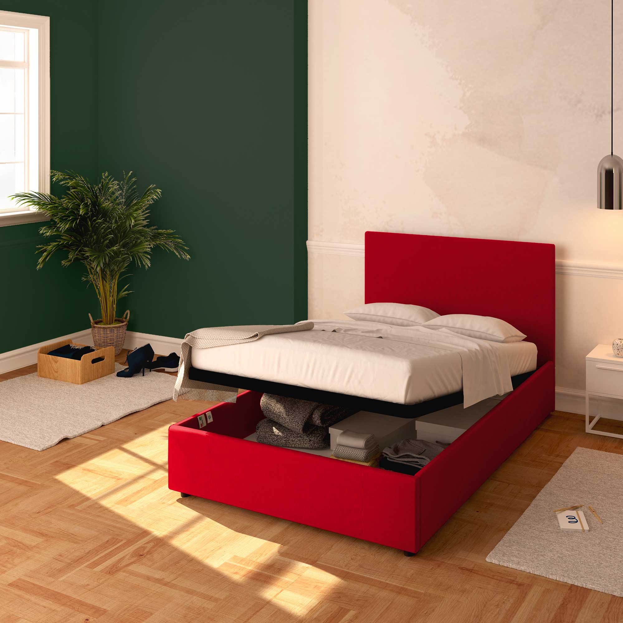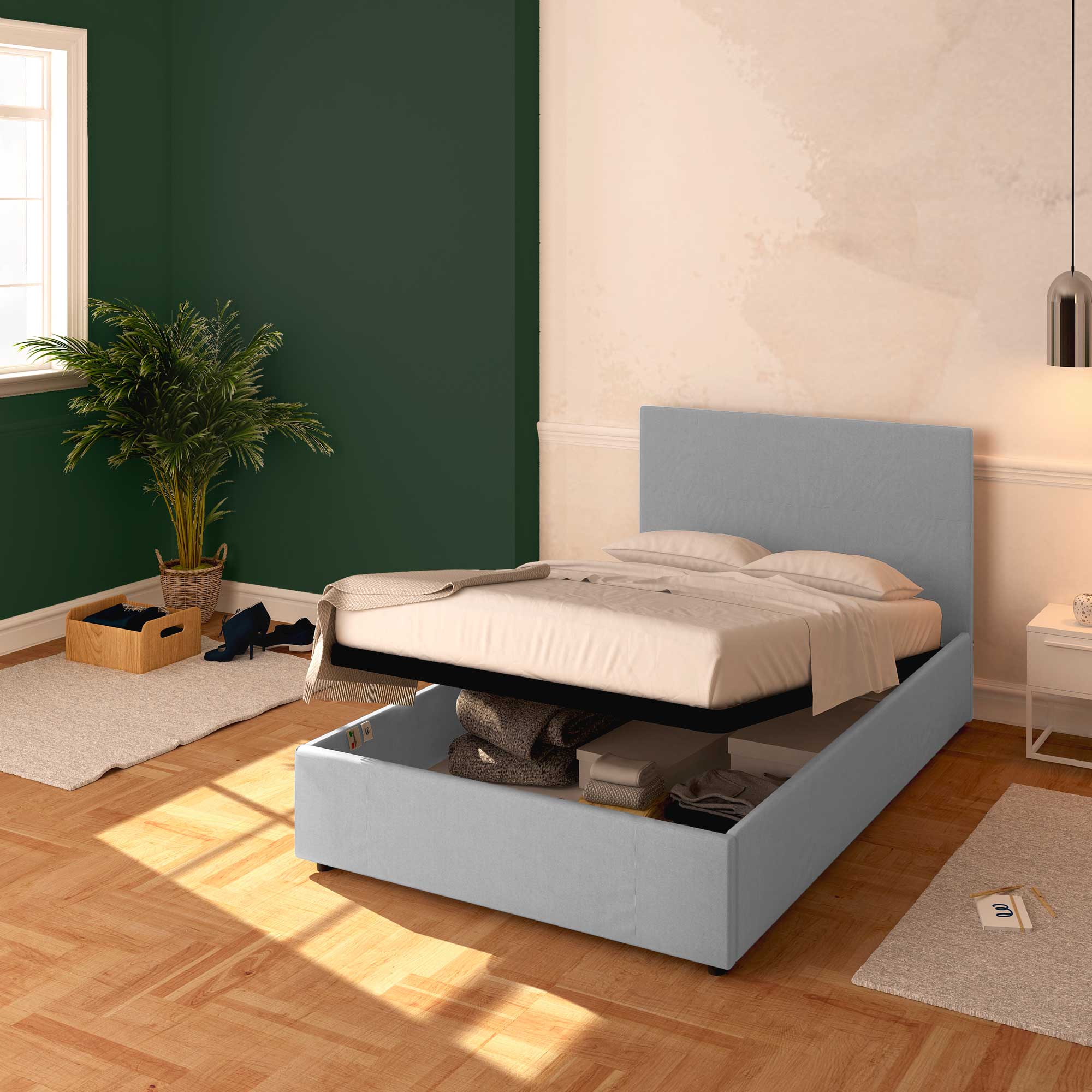 The Rossano eco-leather removable cover one-and-a-half storage bed allows you to use the space under the bed to store blankets, sheets, duvets, clothes, and boxes. The bed base and mattress lift easily via the handle. The storage bed arrives at home to be assembled, accompanied by simple instructions to follow.