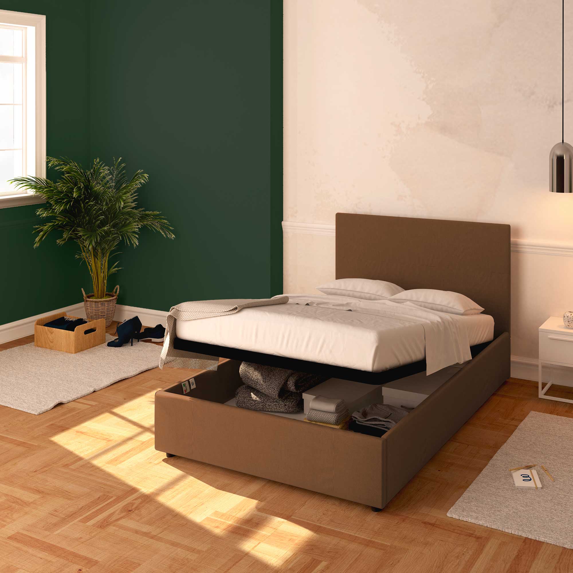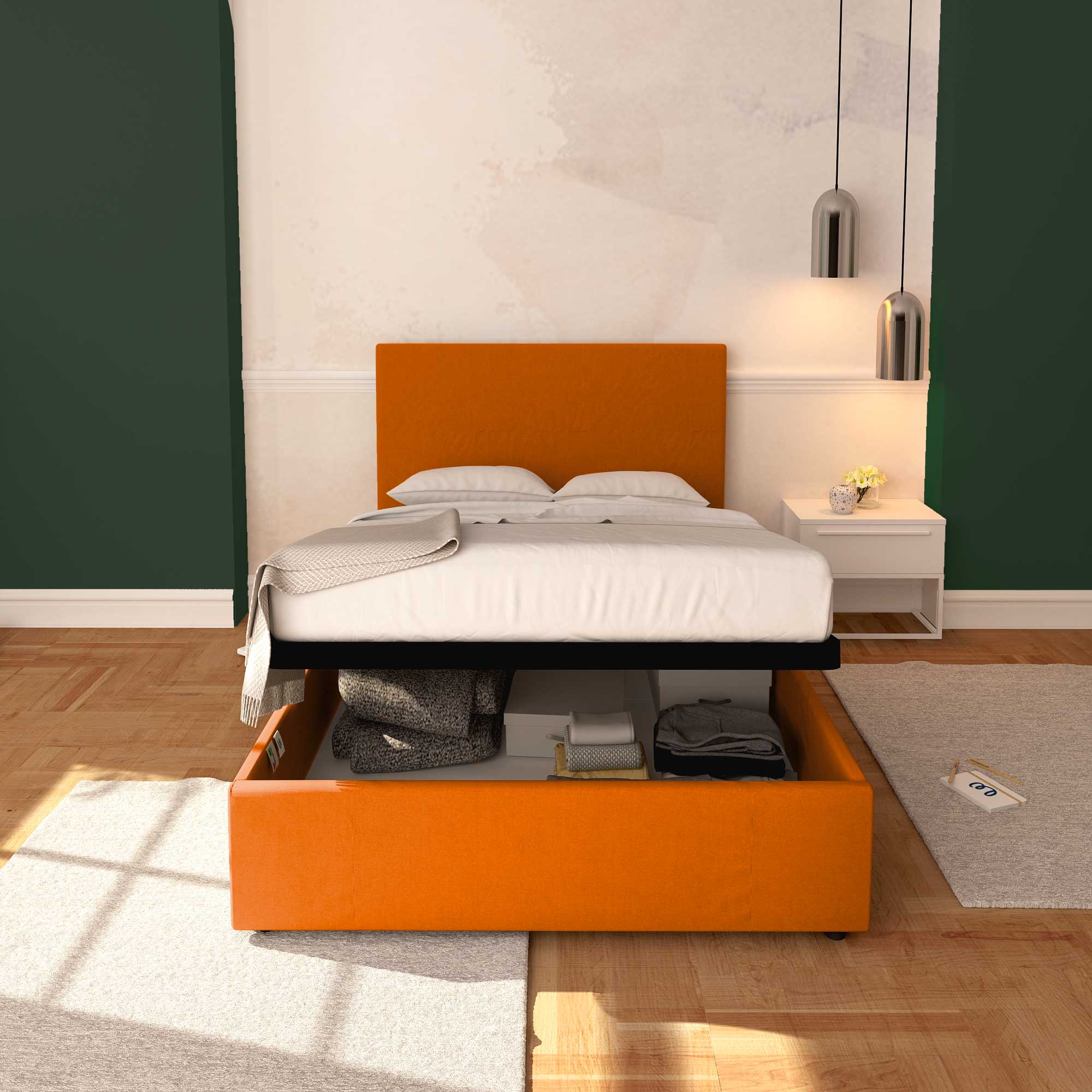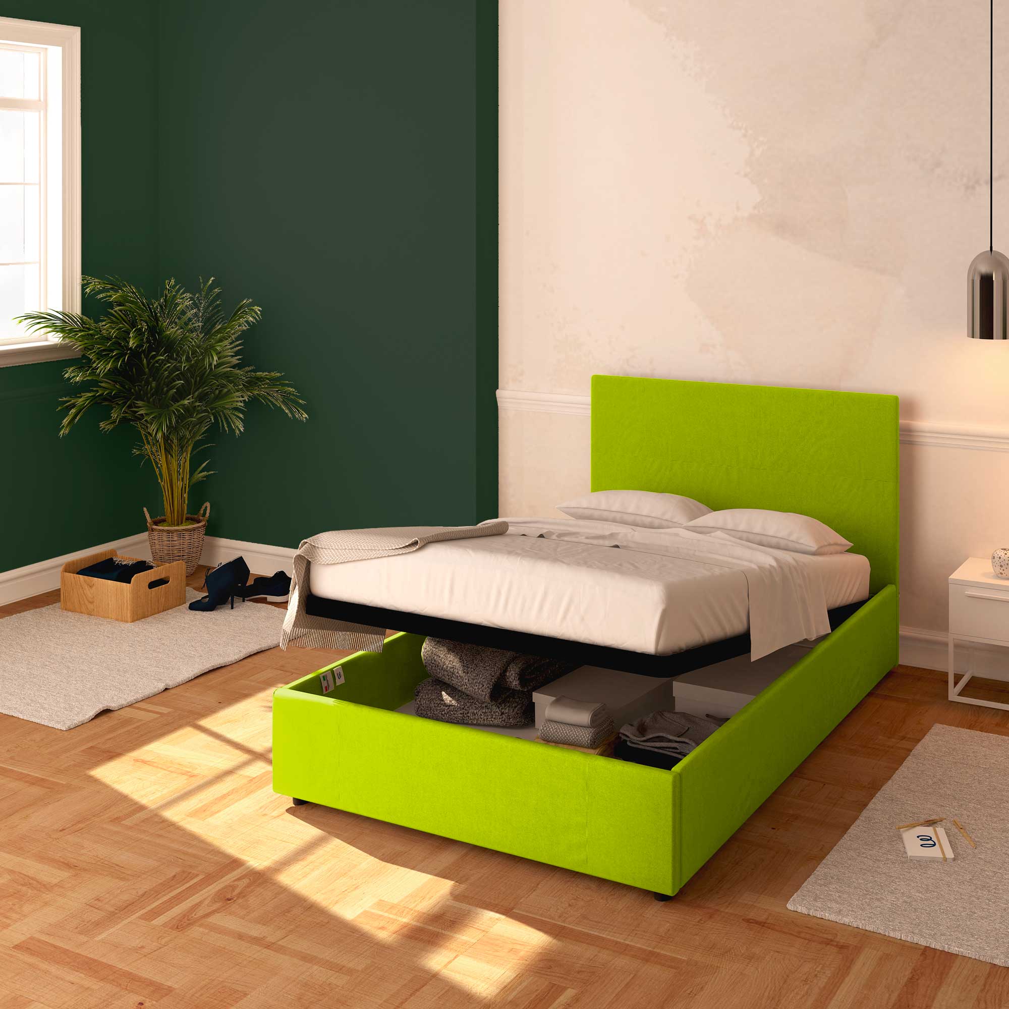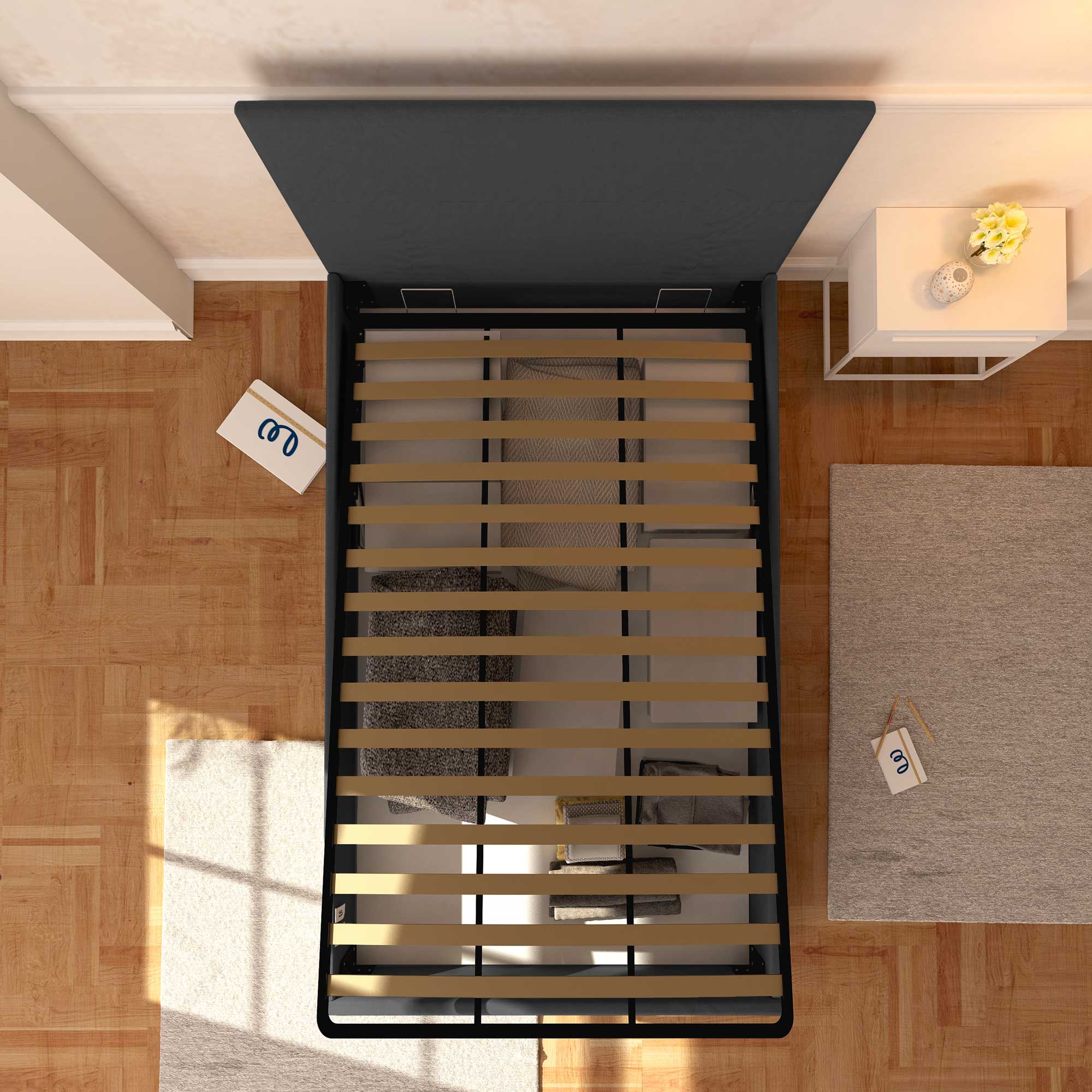 The Rossano eco-leather removable cover one-and-a-half storage bed allows you to use the space under the bed to store blankets, sheets, duvets, clothes, and boxes. The bed base and mattress lift easily via the handle. The storage bed arrives at home to be assembled, accompanied by simple instructions to follow.