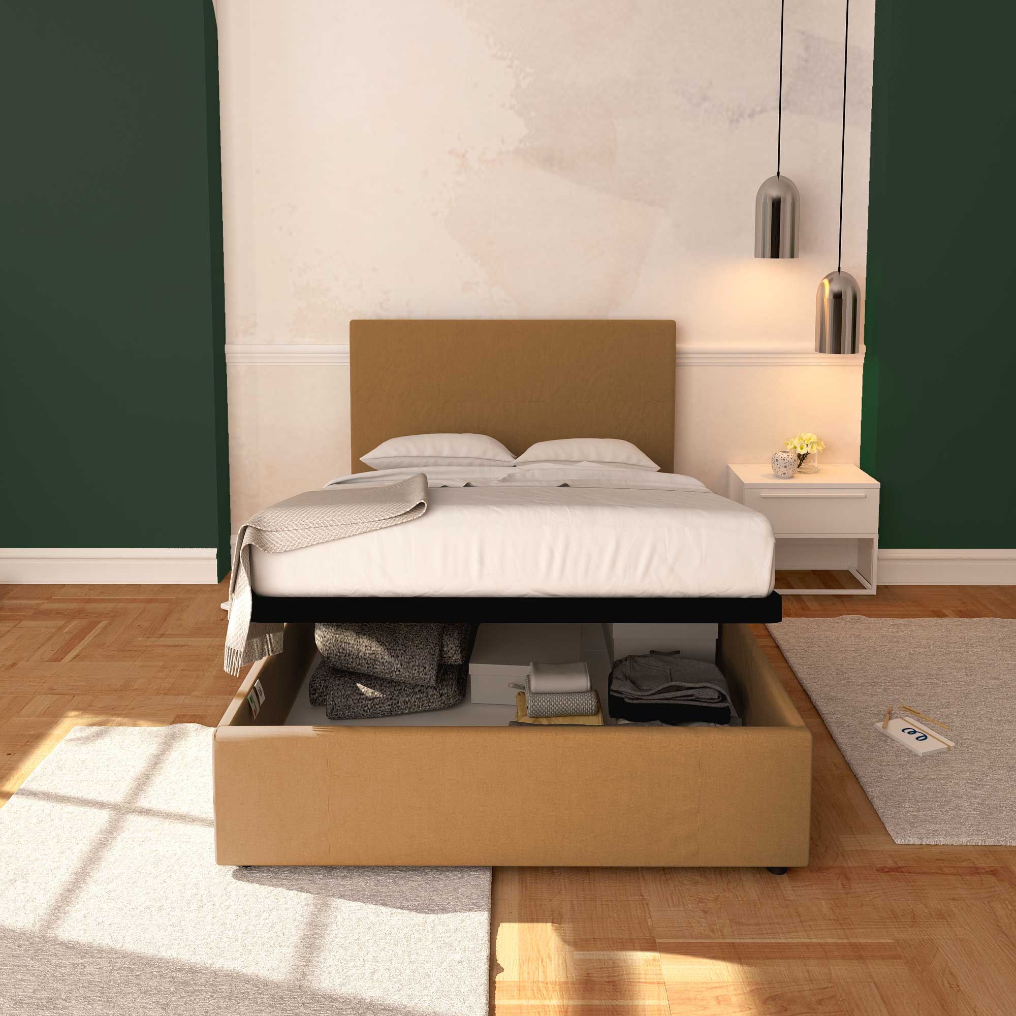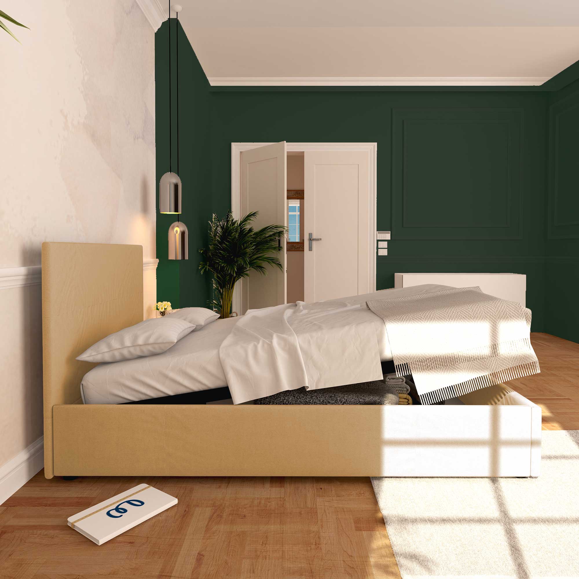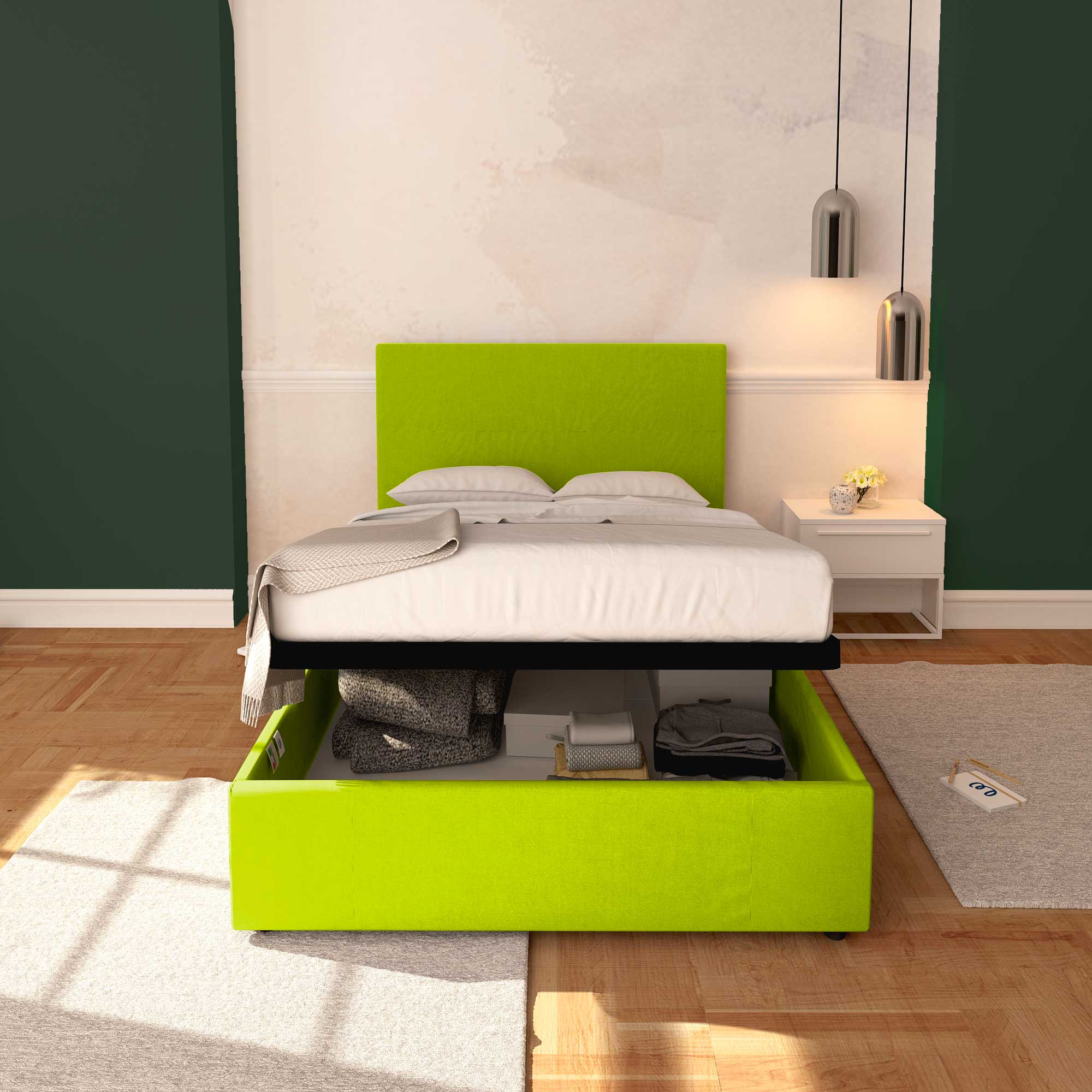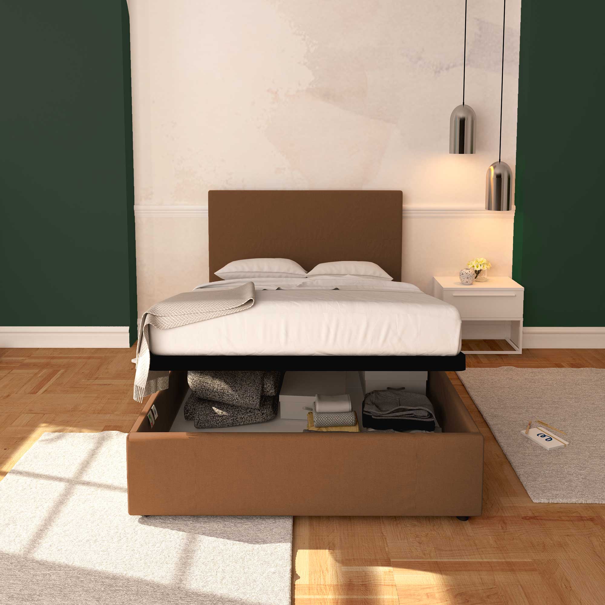 The Rossano eco-leather removable cover one-and-a-half storage bed allows you to use the space under the bed to store blankets, sheets, duvets, clothes, and boxes. The bed base and mattress lift easily via the handle. The storage bed arrives at home to be assembled, accompanied by simple instructions to follow.