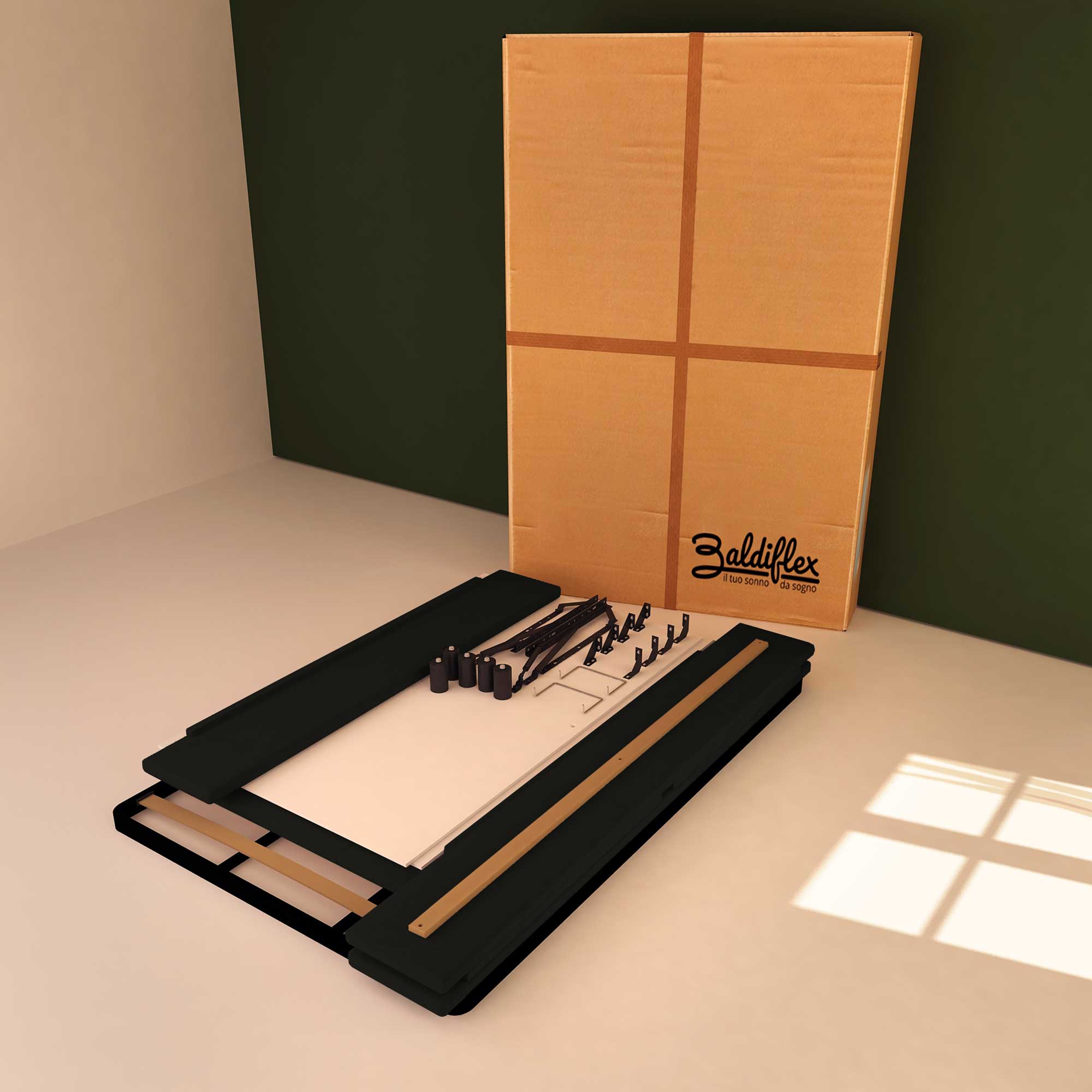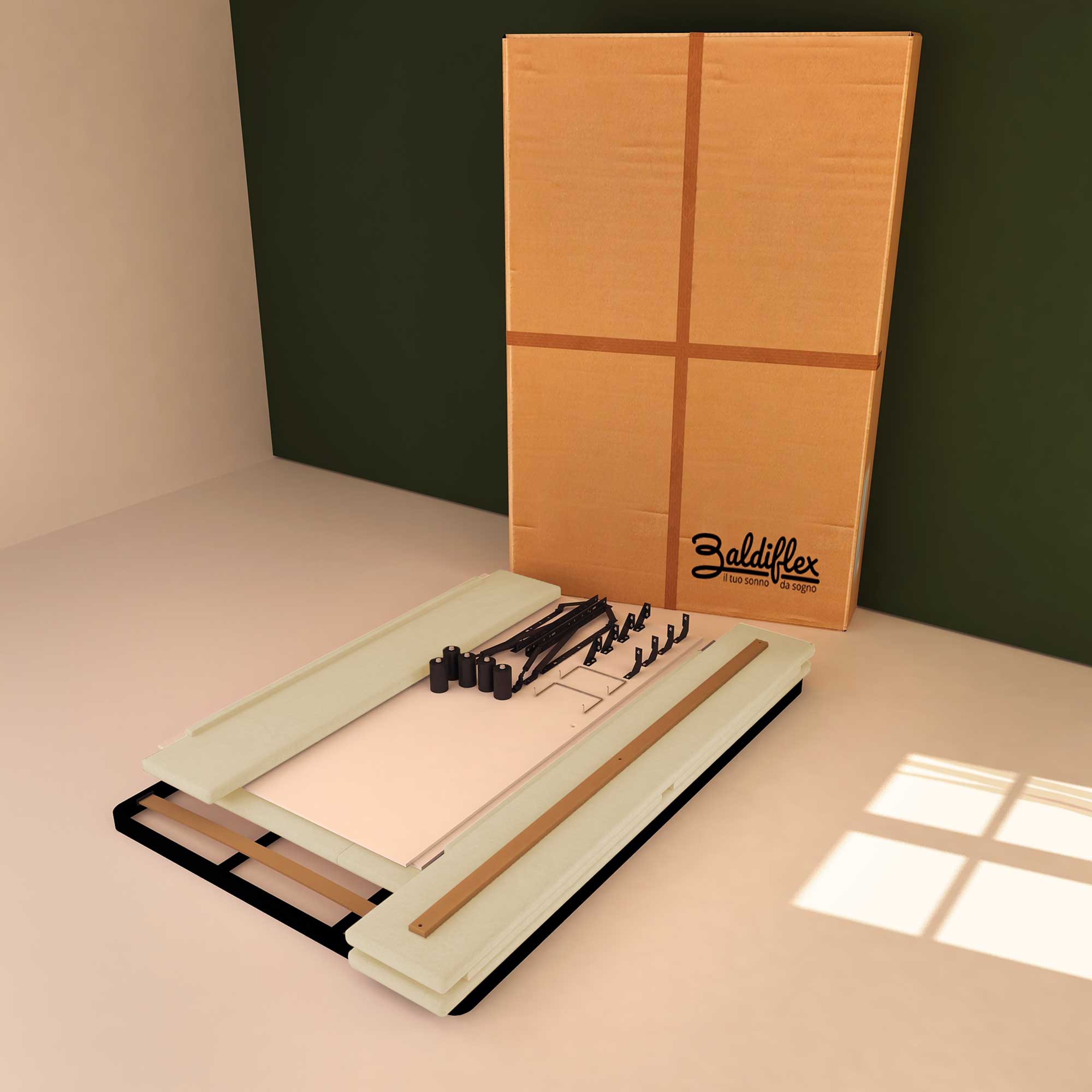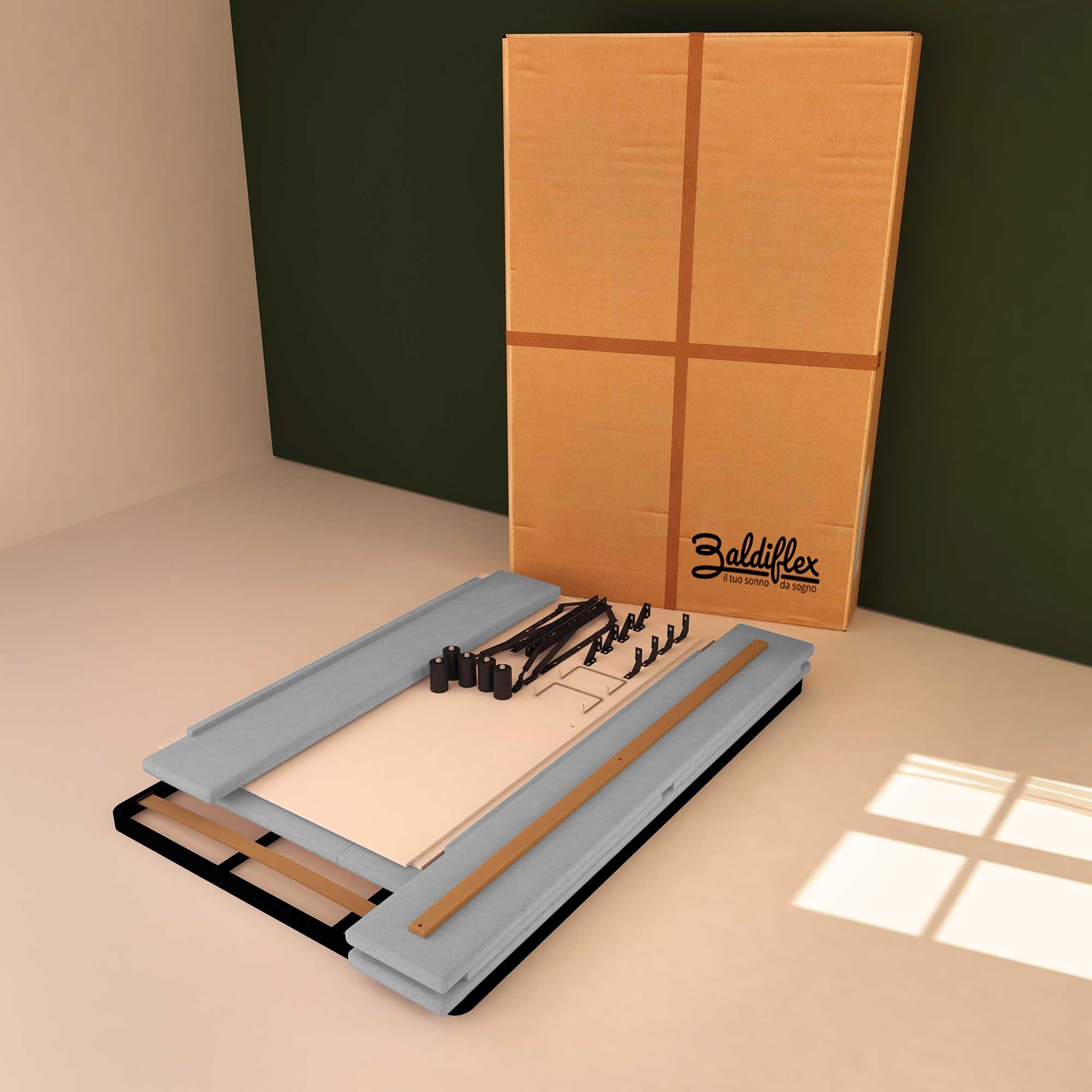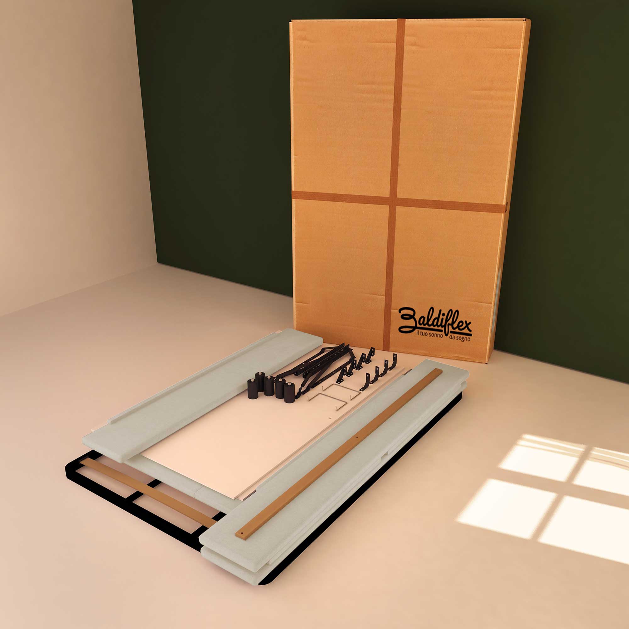 The Rossano eco-leather removable cover one-and-a-half storage bed allows you to use the space under the bed to store blankets, sheets, duvets, clothes, and boxes. The bed base and mattress lift easily via the handle. The storage bed arrives at home to be assembled, accompanied by simple instructions to follow.