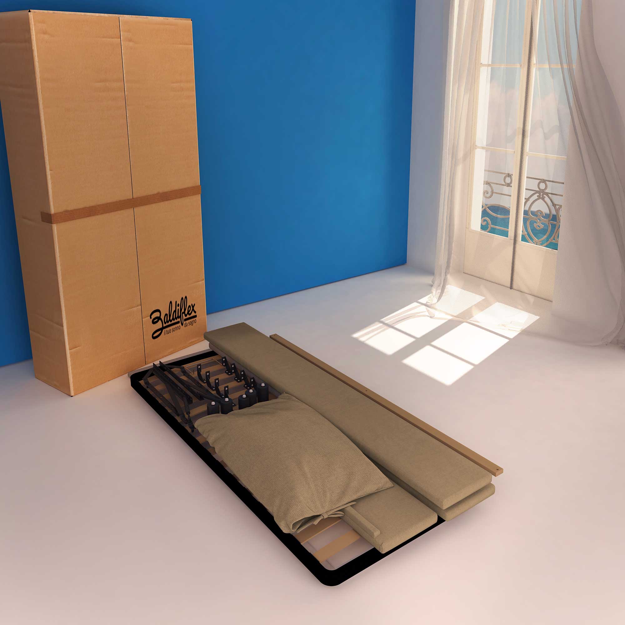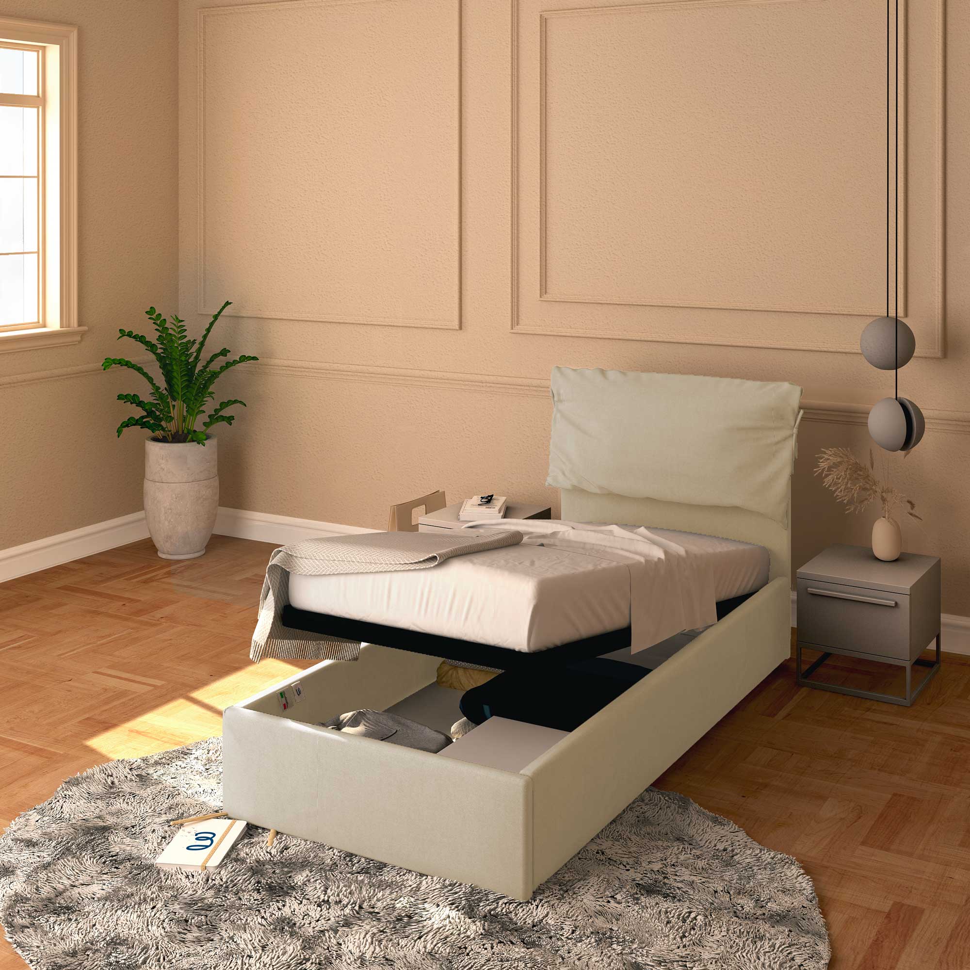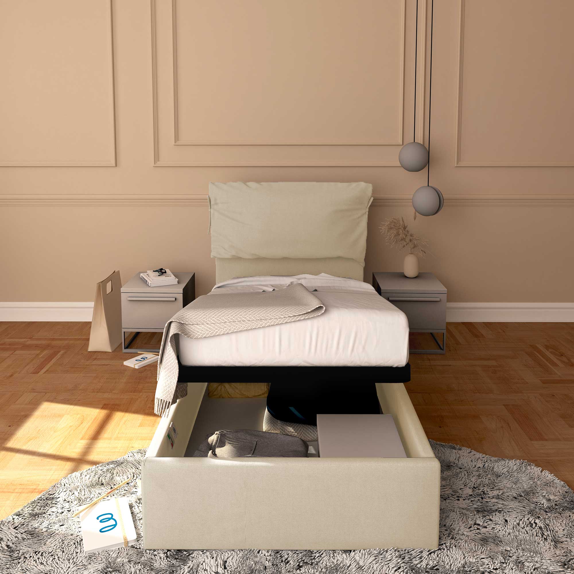 • Letto contenitore singolo in ecopelle sfoderabile nocciola Baldiflex Licia Soft cartone