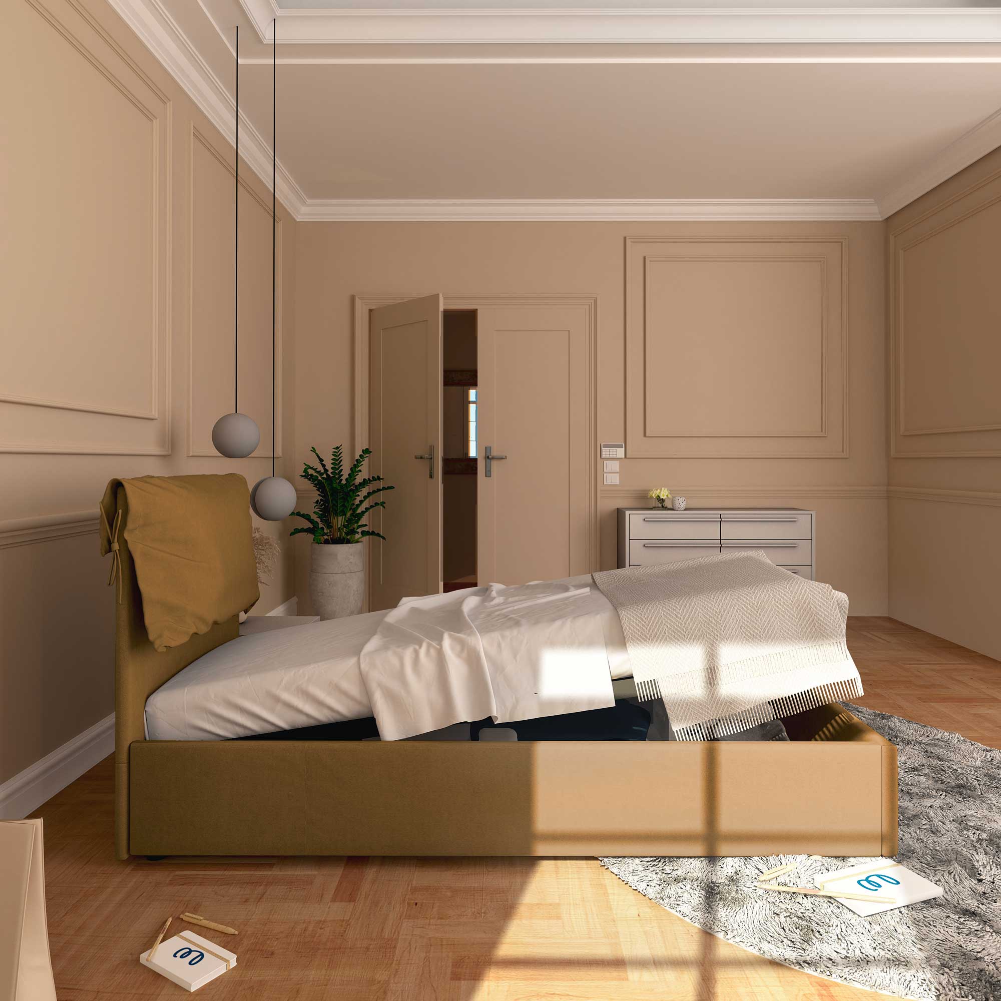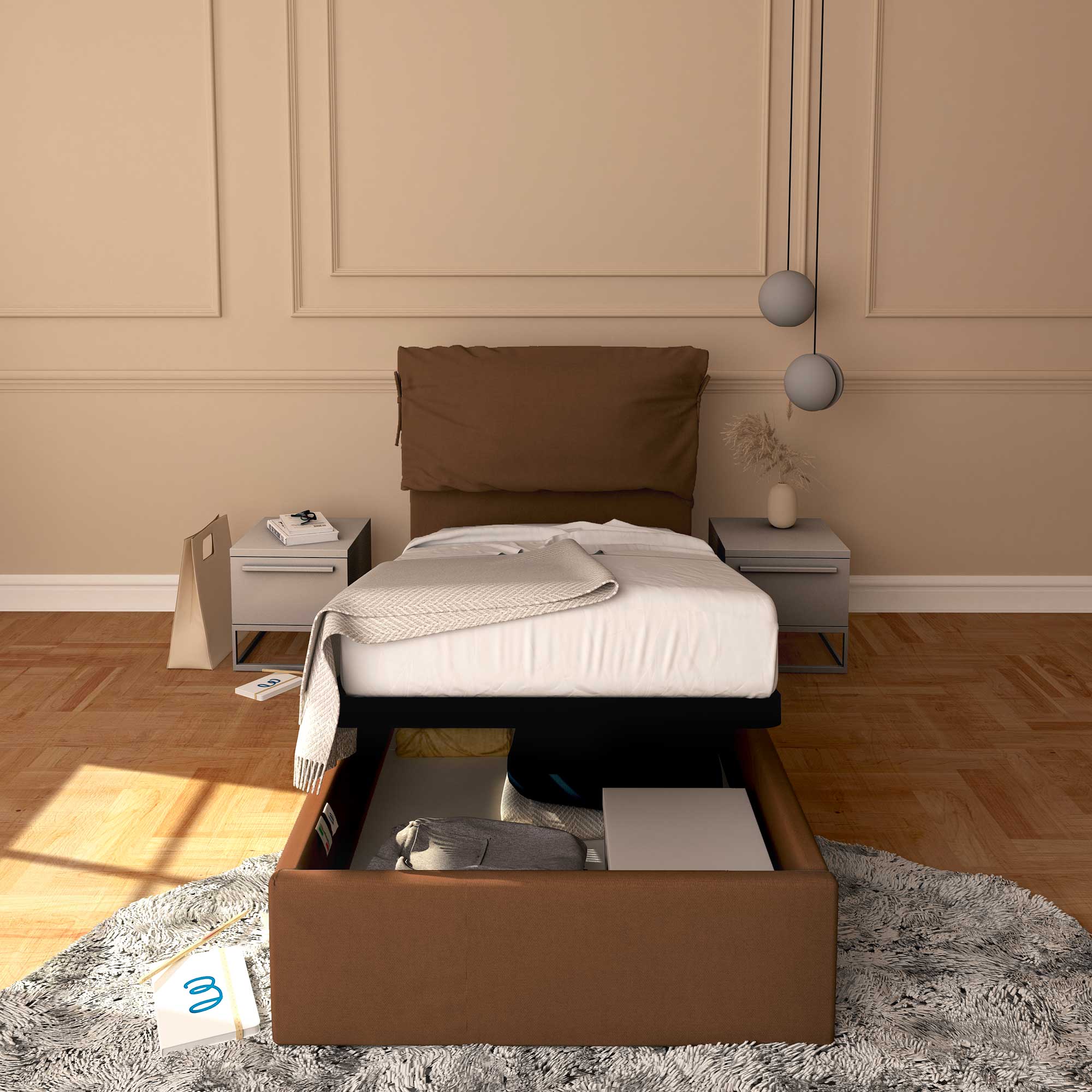 • Letto contenitore singolo in ecopelle sfoderabile nocciola Baldiflex Licia Soft struttura