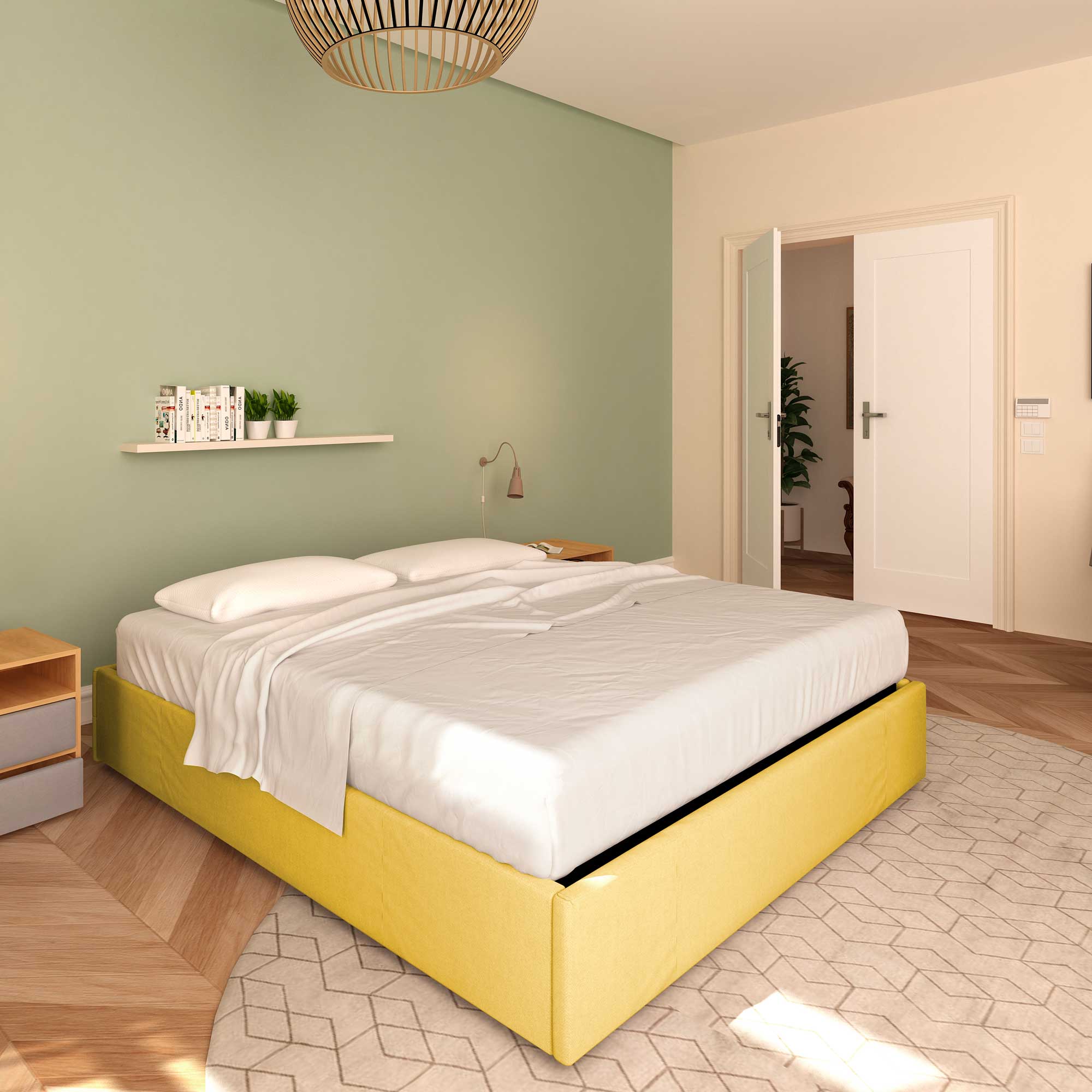 Clara is an elegant upholstered bed without storage, covered in high-quality fabric. With its modern and clean lines, it fits perfectly into any environment, offering a touch of style and comfort to your bedroom.