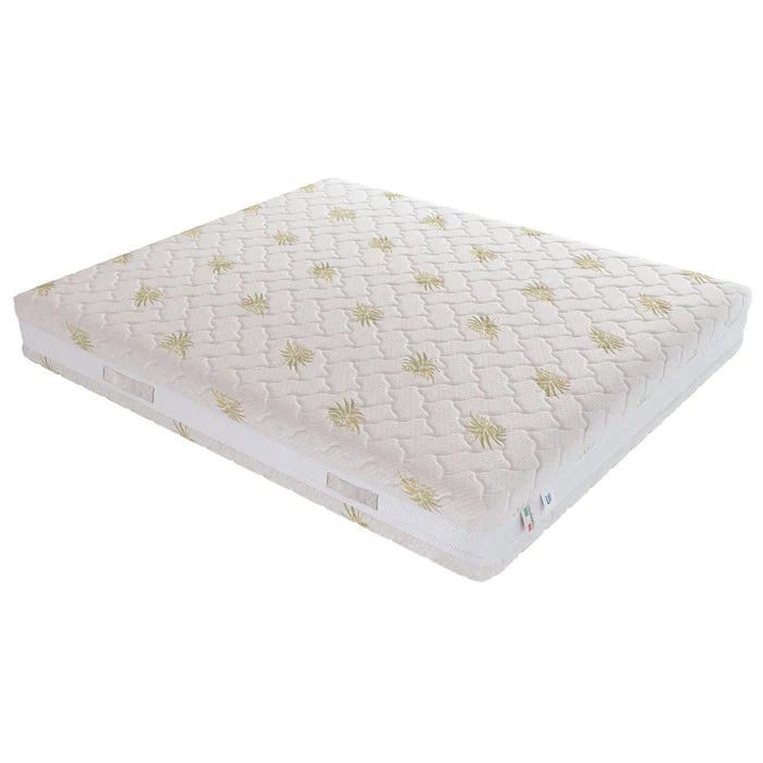 • The cover Classic Aloe 3D has a moisturizing and soothing function even for sensitive skin. The main features of the Aloe fabric are breathability and, last but not least, the natural treatment applied to it, making it a special fabric to the touch, softer and more delicate than others. Equipped with a double zipper, one separable and the other for maintenance (to air out the mattress interior), the cover can be easily removed to wash it directly in the washing machine at 30/40 degrees. We call this cover 3D to indicate the special perimeter band it has, placed between the two zippers of the cover and made with a fabric that features a highly technical three-dimensional weave, with characteristics suitable to increase the mattress's breathability.