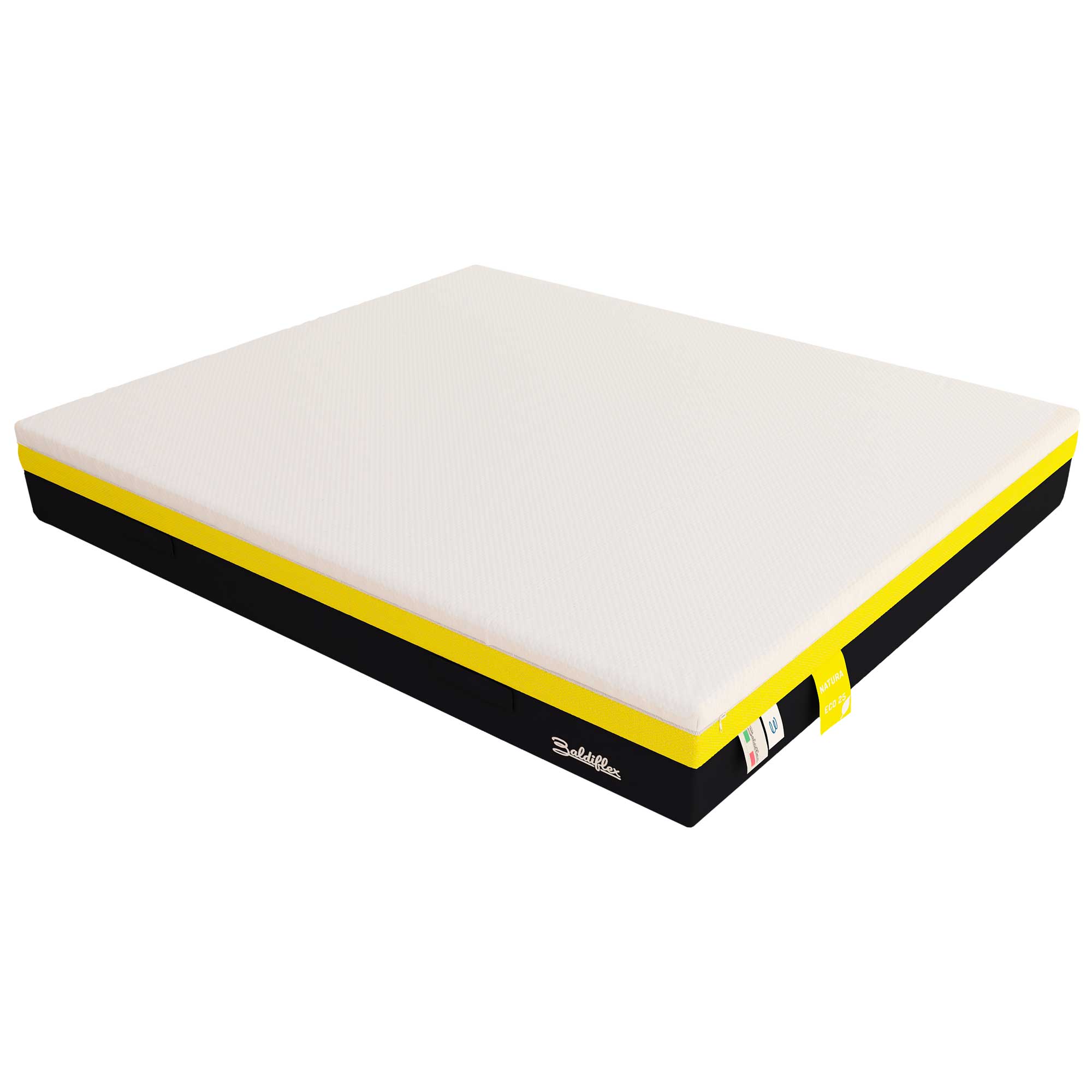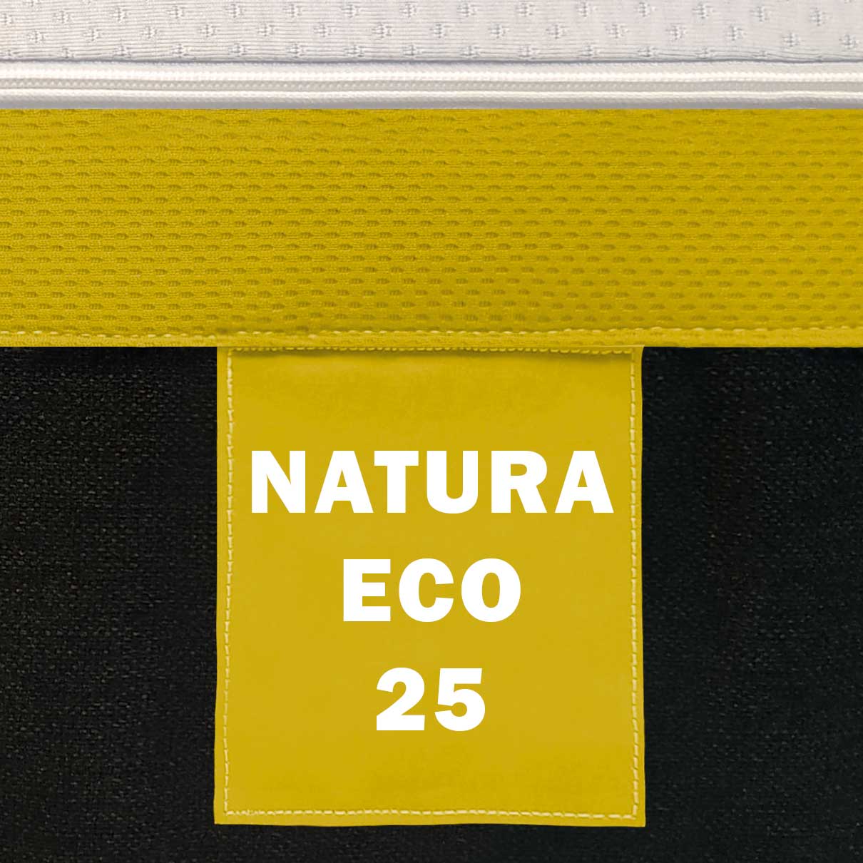 The Natura Eco 25 mattress is 25 cm high, has medium-high firmness, and ensures comfort for those who prefer to sleep on fairly firm mattresses without giving up the characteristics of latex. The addition of coconut fiber gives the mattress greater breathability and firm support, creating an internal area with high air circulation; in fact, this fiber is not only essential to increase its durability but also to absorb moisture more quickly that would otherwise concentrate inside the product without the possibility of turning into mold, which often happened with older latex designs. The cover, with handles and zipper, is removable and washable. All chosen raw materials are hypoallergenic and anti-mite, certified Oeko-Tex. We recommend this type of mattress because latex is a natural material that is extremely elastic and, thanks to these characteristics, adapts to any body type in any sleeping position during rest. It is often also recommended for slatted bed bases, both orthopedic and ergonomic, including motorized ones.