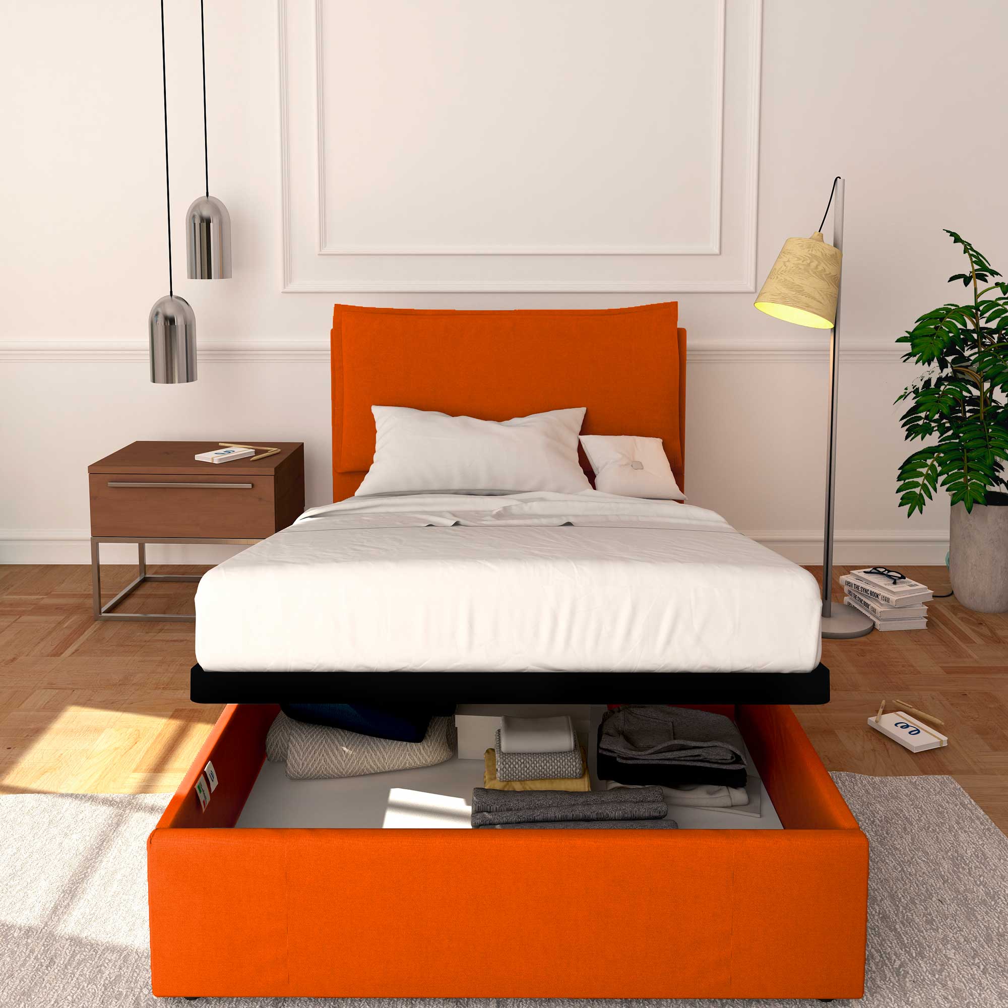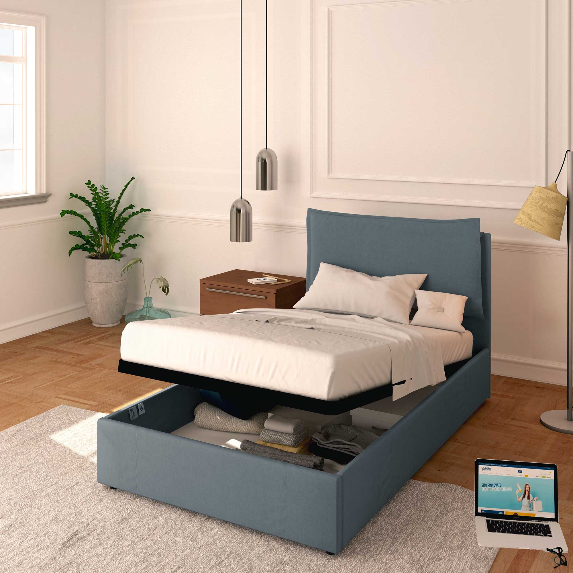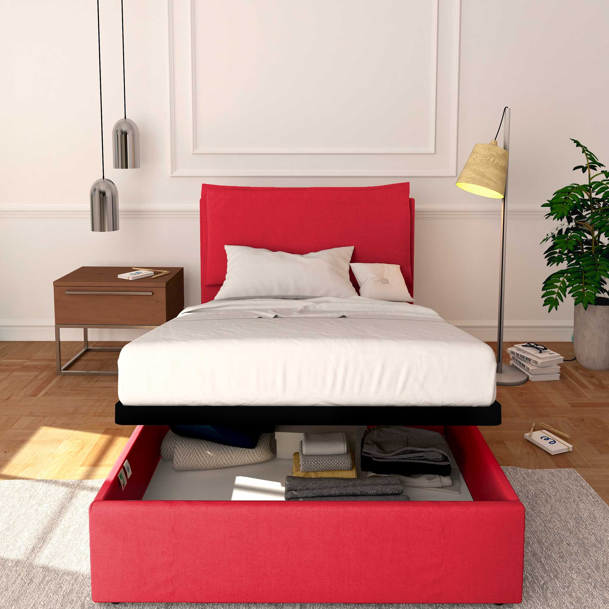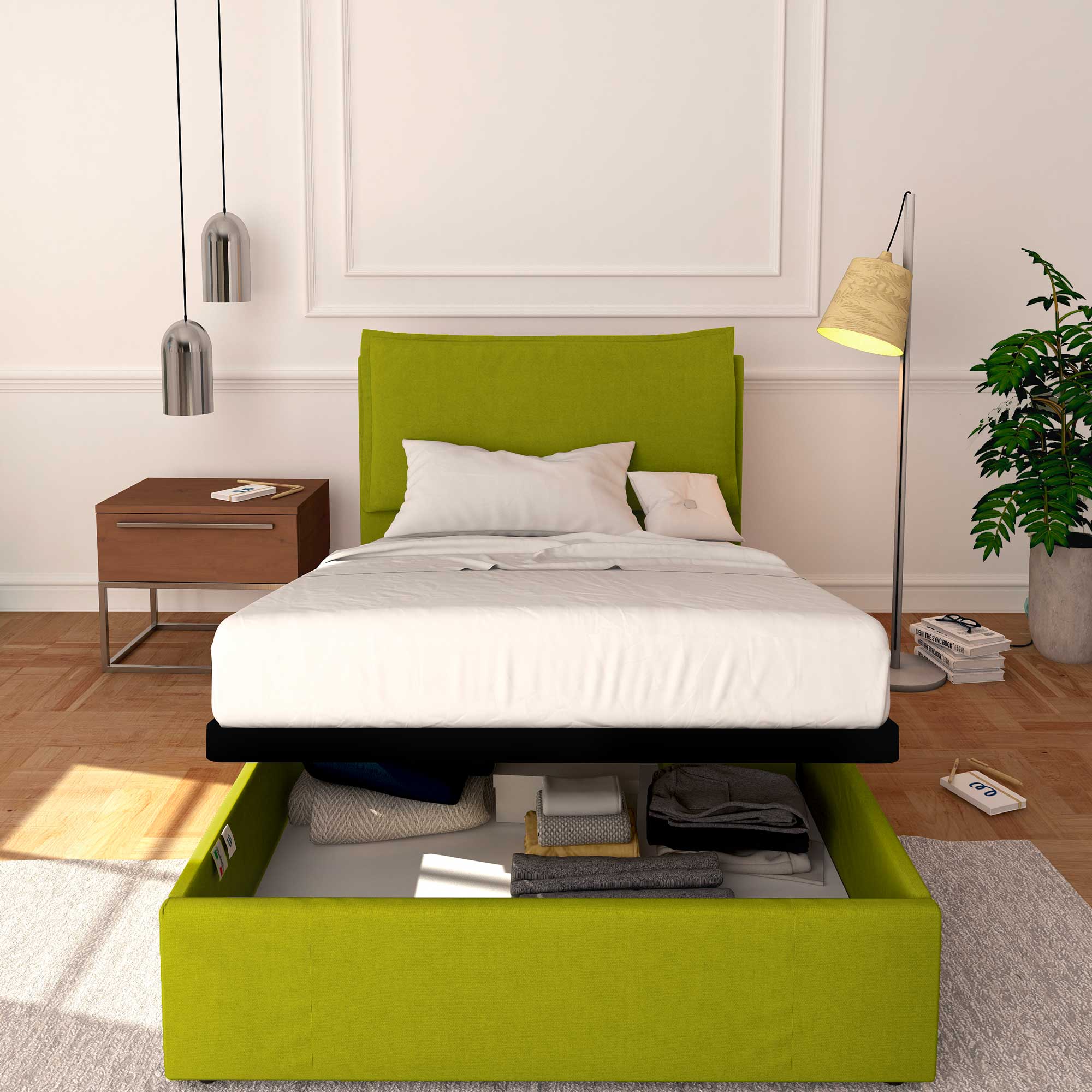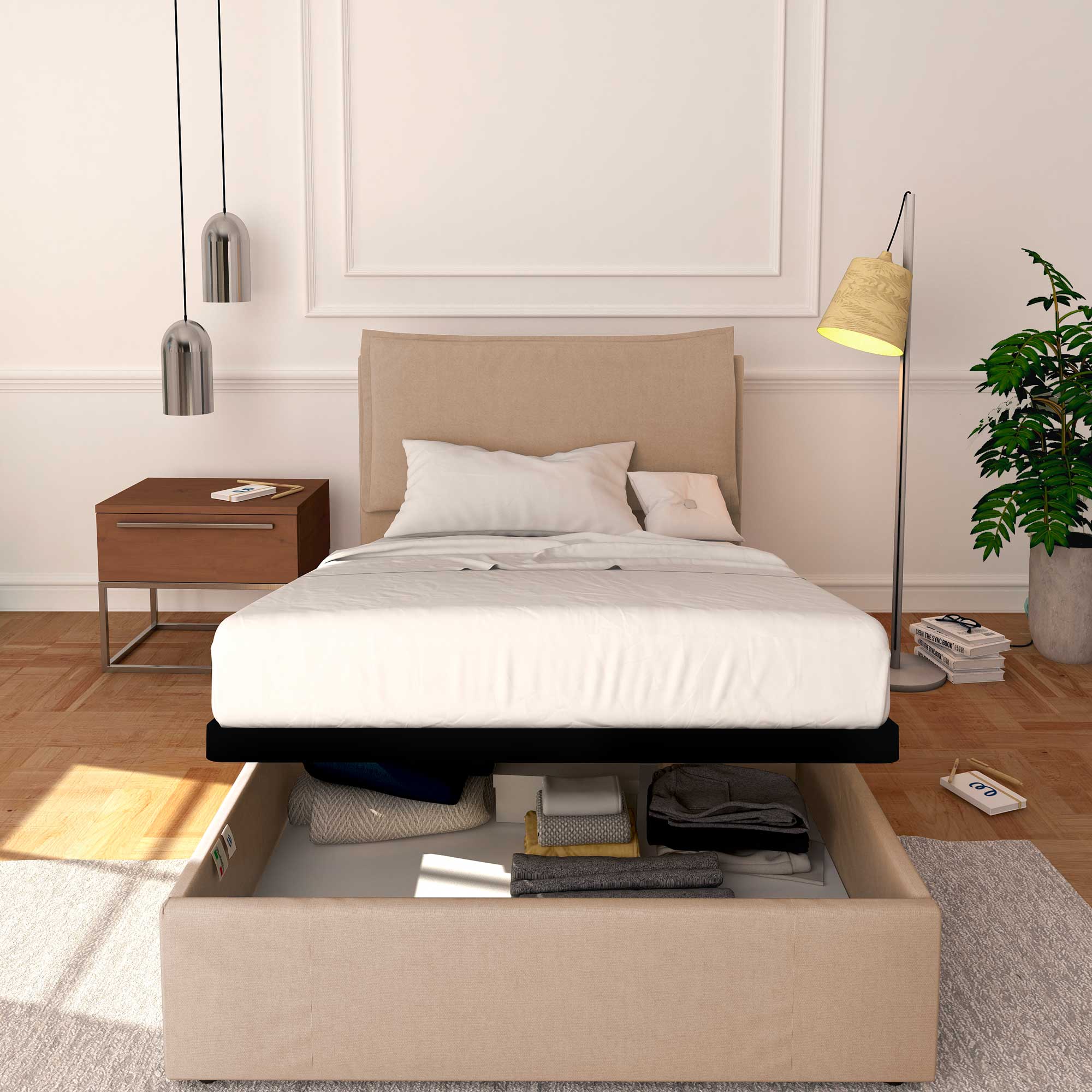One-and-a-half size storage bed in removable fabric Licia + Bros mattress 1600 springs + Mattress protector