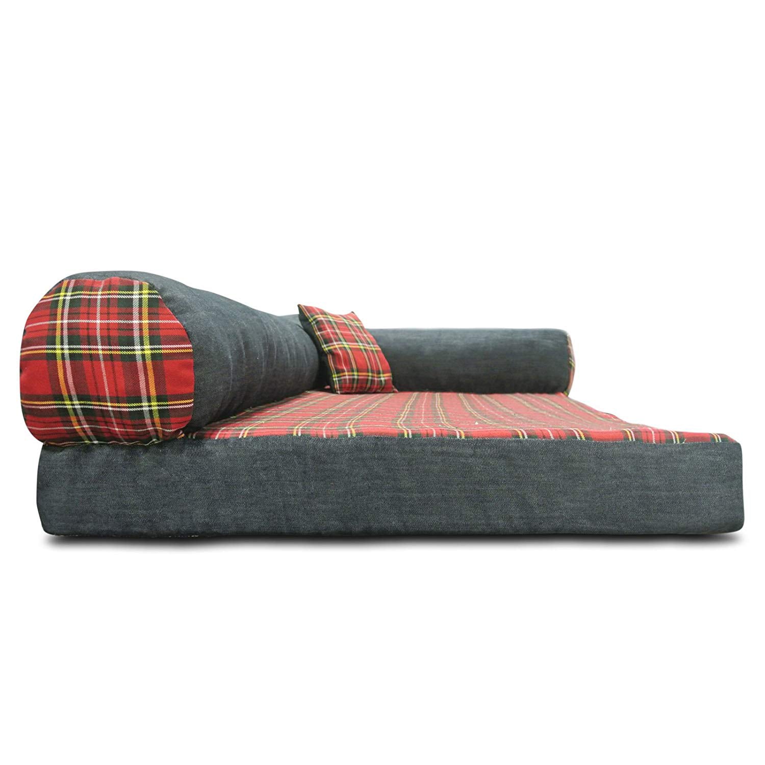 • Rectangular dog and cat sofa, with edges, with water-repellent cover, cooling with a tartan pattern
