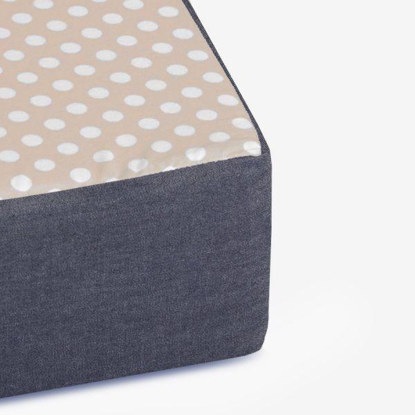 • Rectangular dog and cat sofa, beige and gray with white polka dots