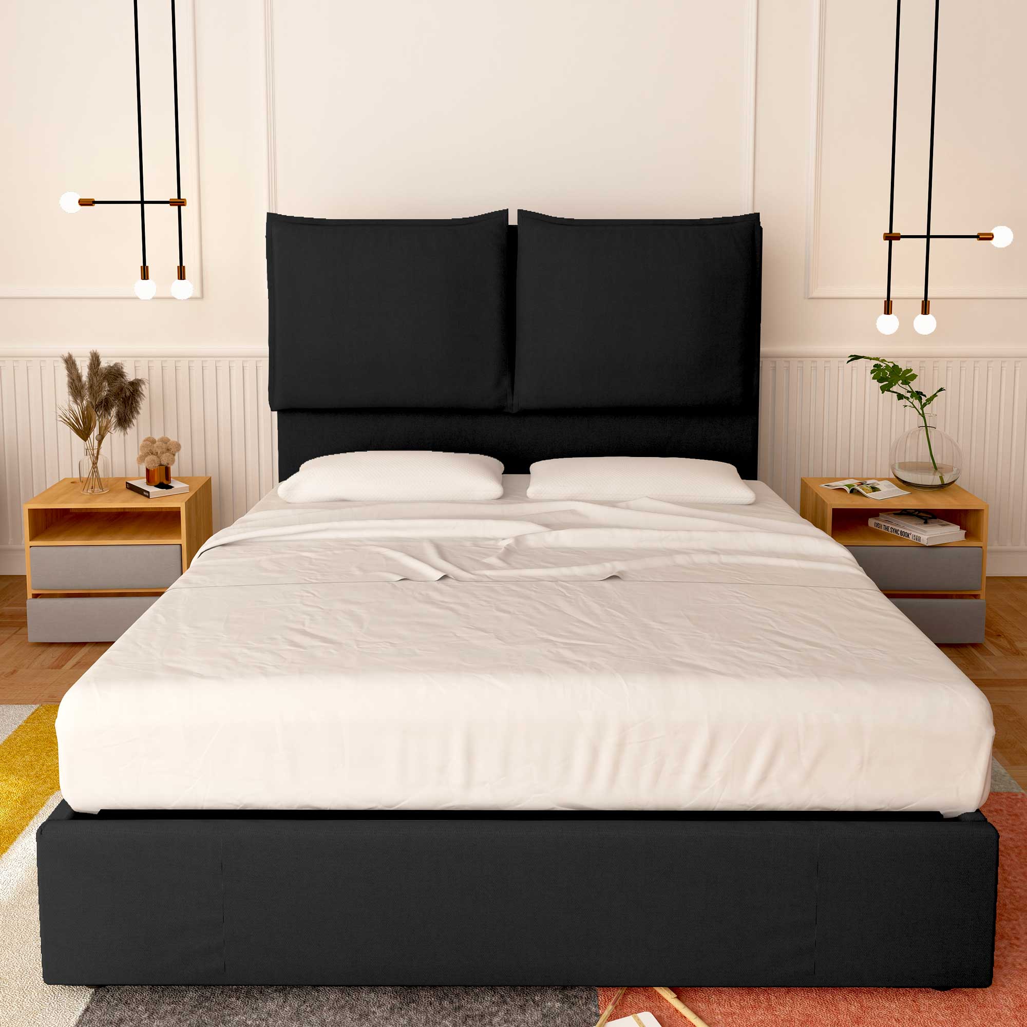 Caractéristiques du lit coffre king / queen size en tissu déhoussable Licia XL