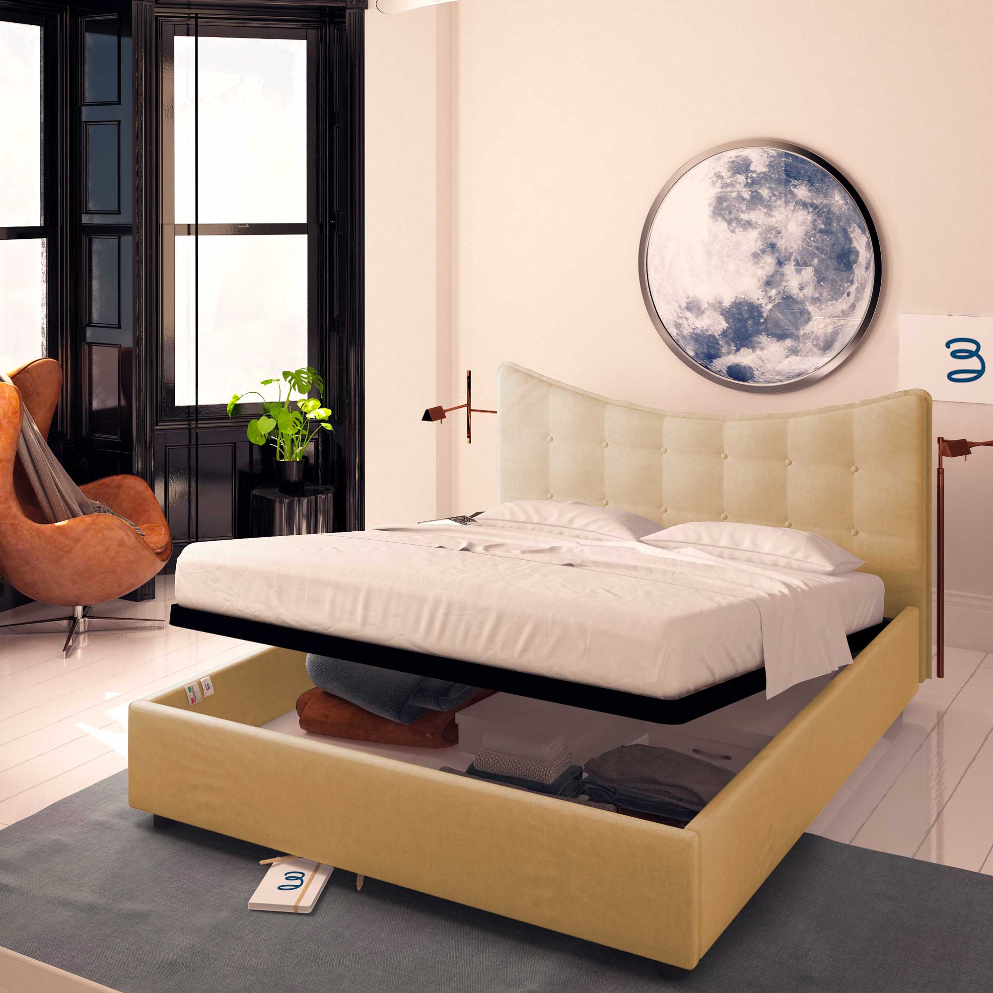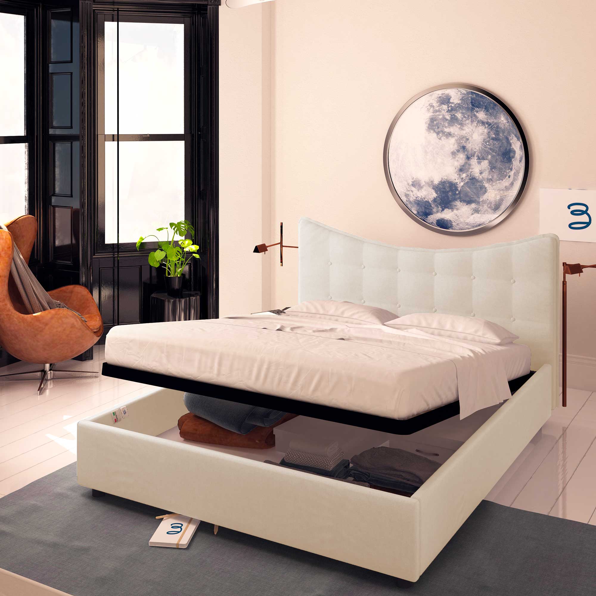• Baldiflex letto contenitore matrimoniale in ecopelle Moon crema