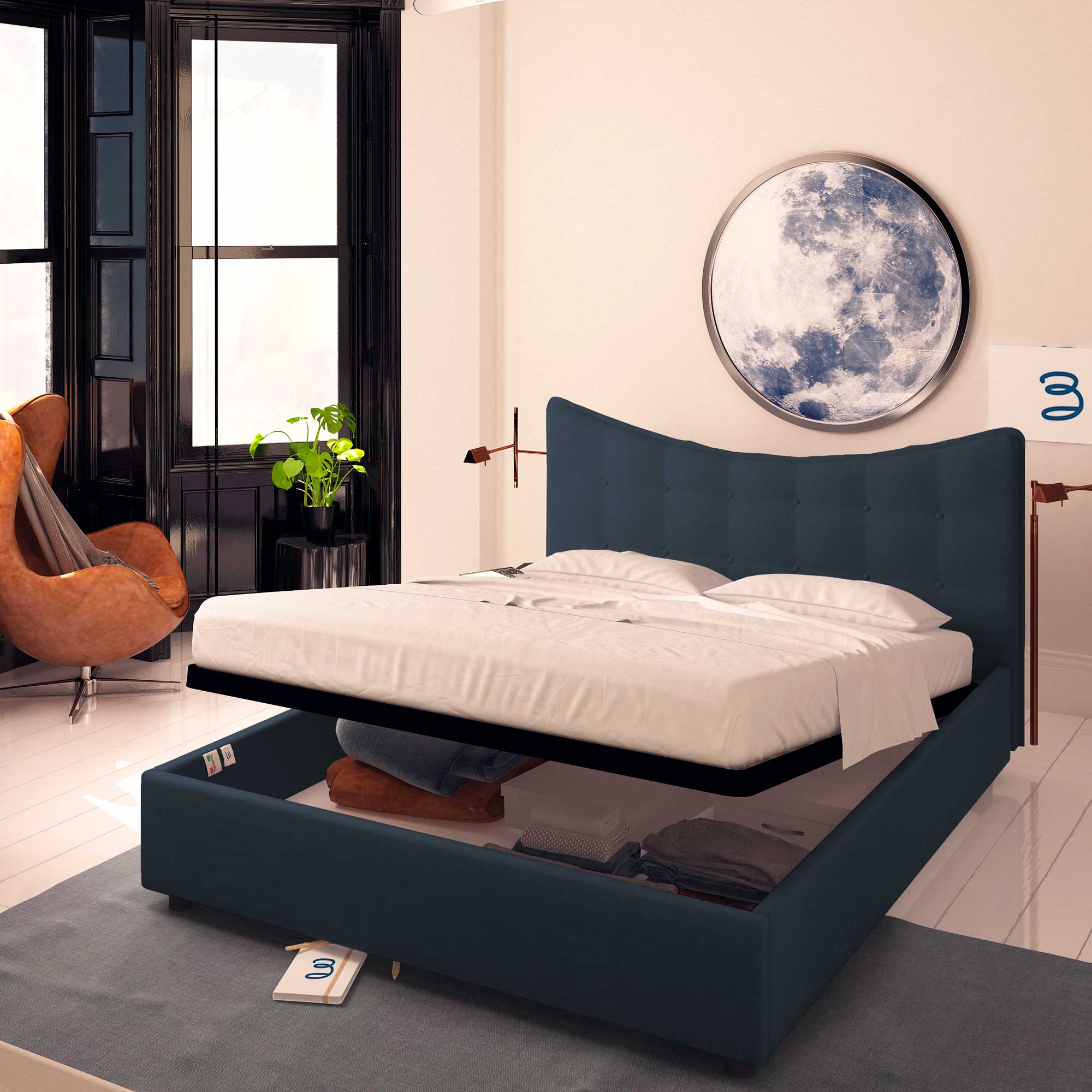 • Baldiflex letto contenitore matrimoniale in ecopelle Moon blu notte