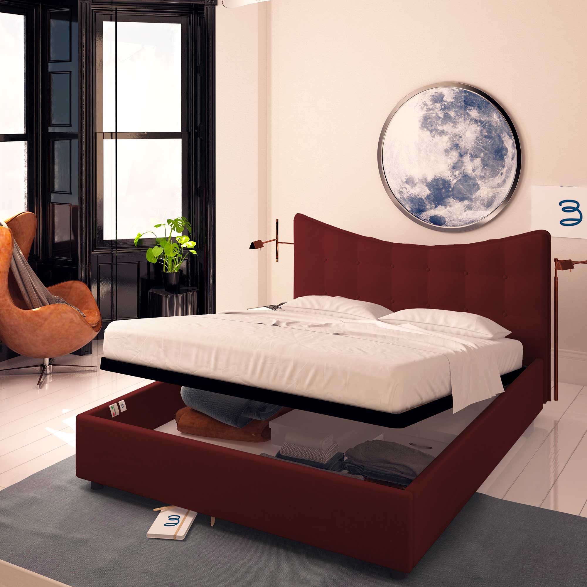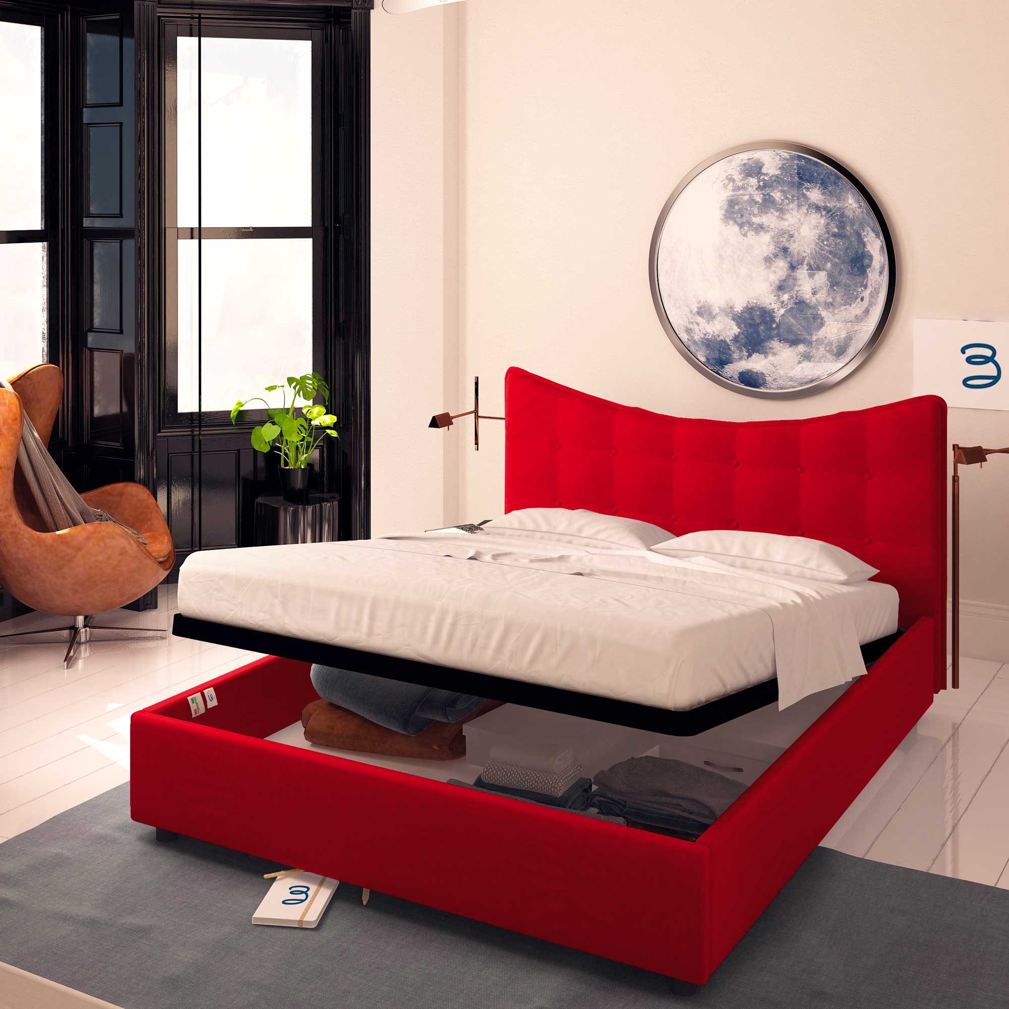 • Baldiflex letto contenitore matrimoniale in ecopelle Moon rosso