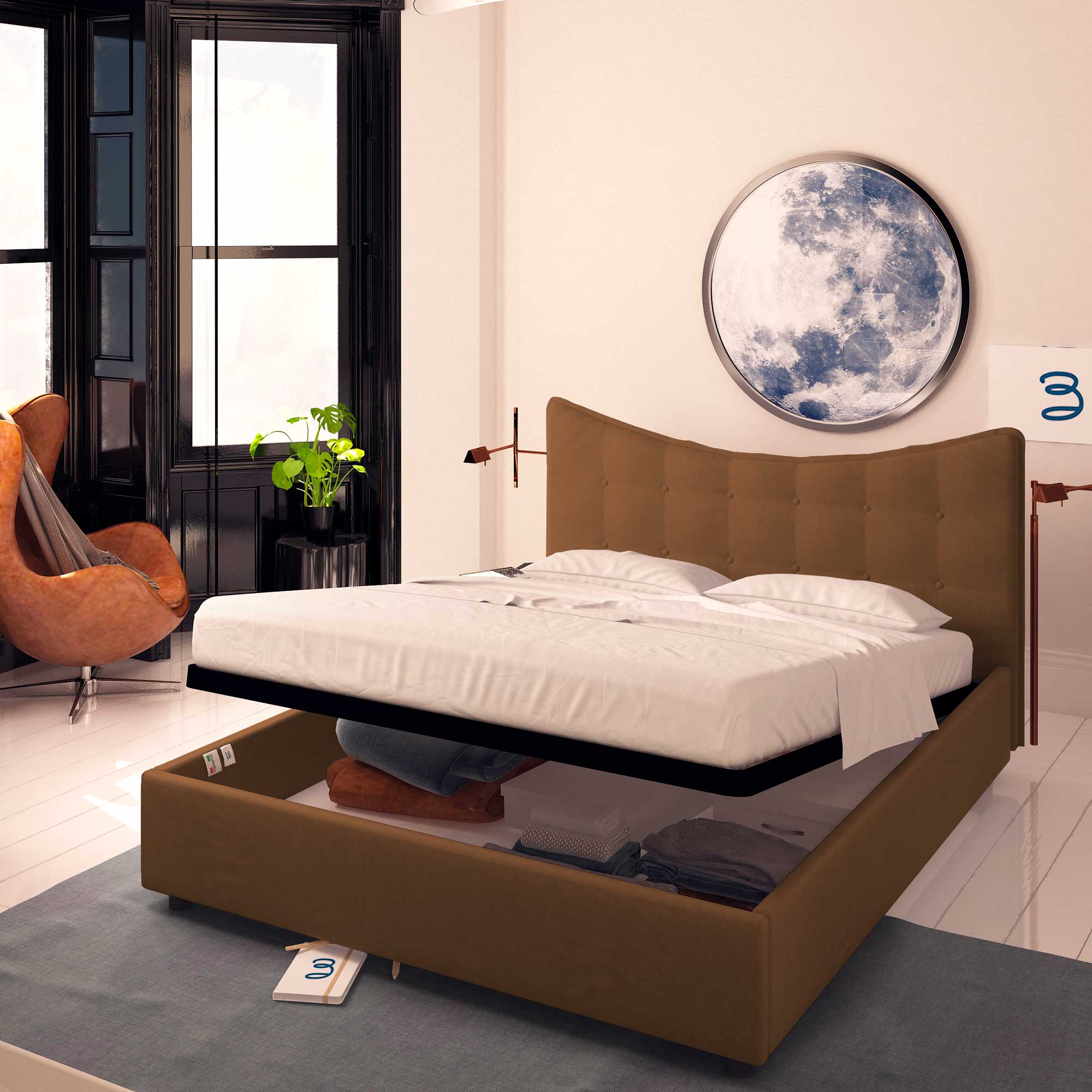 • Baldiflex letto contenitore matrimoniale in ecopelle Moon marrone chiaro