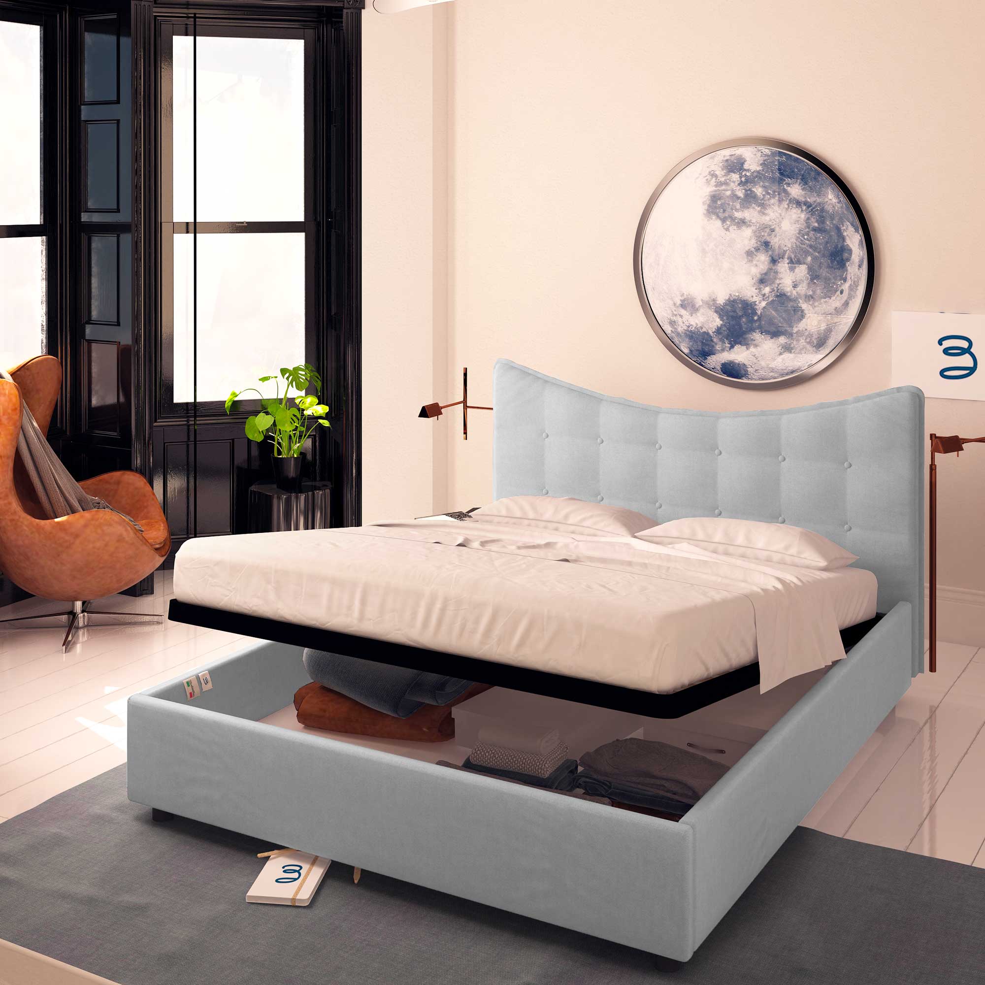 • Baldiflex letto contenitore matrimoniale in ecopelle Moon grigio chiaro