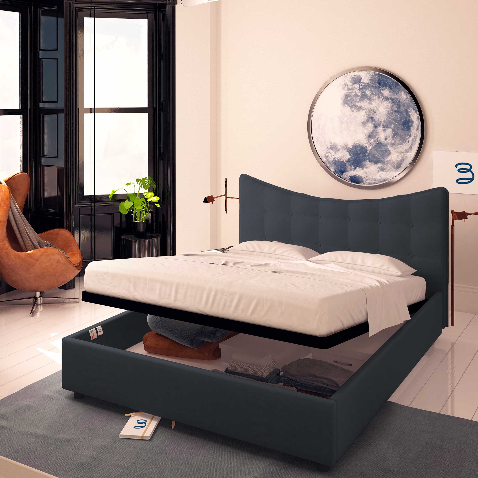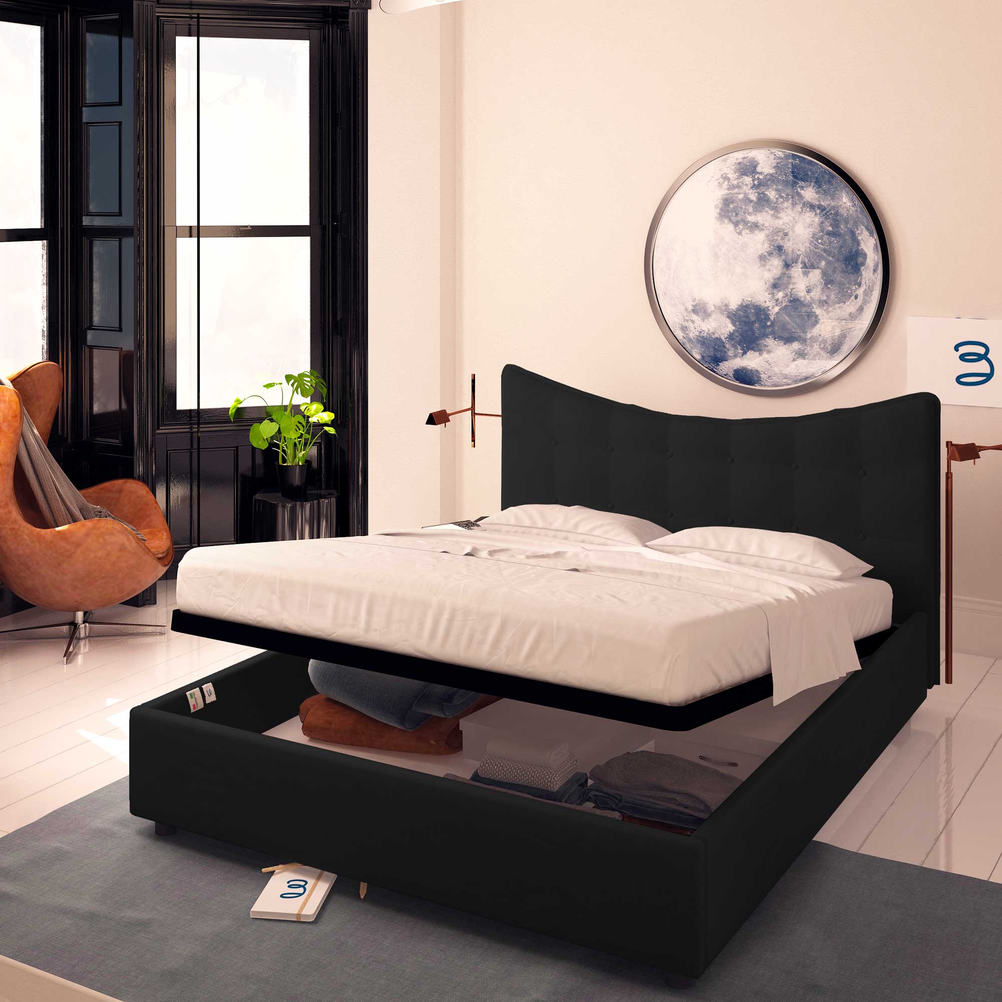 • Baldiflex letto contenitore matrimoniale in ecopelle Moon nero