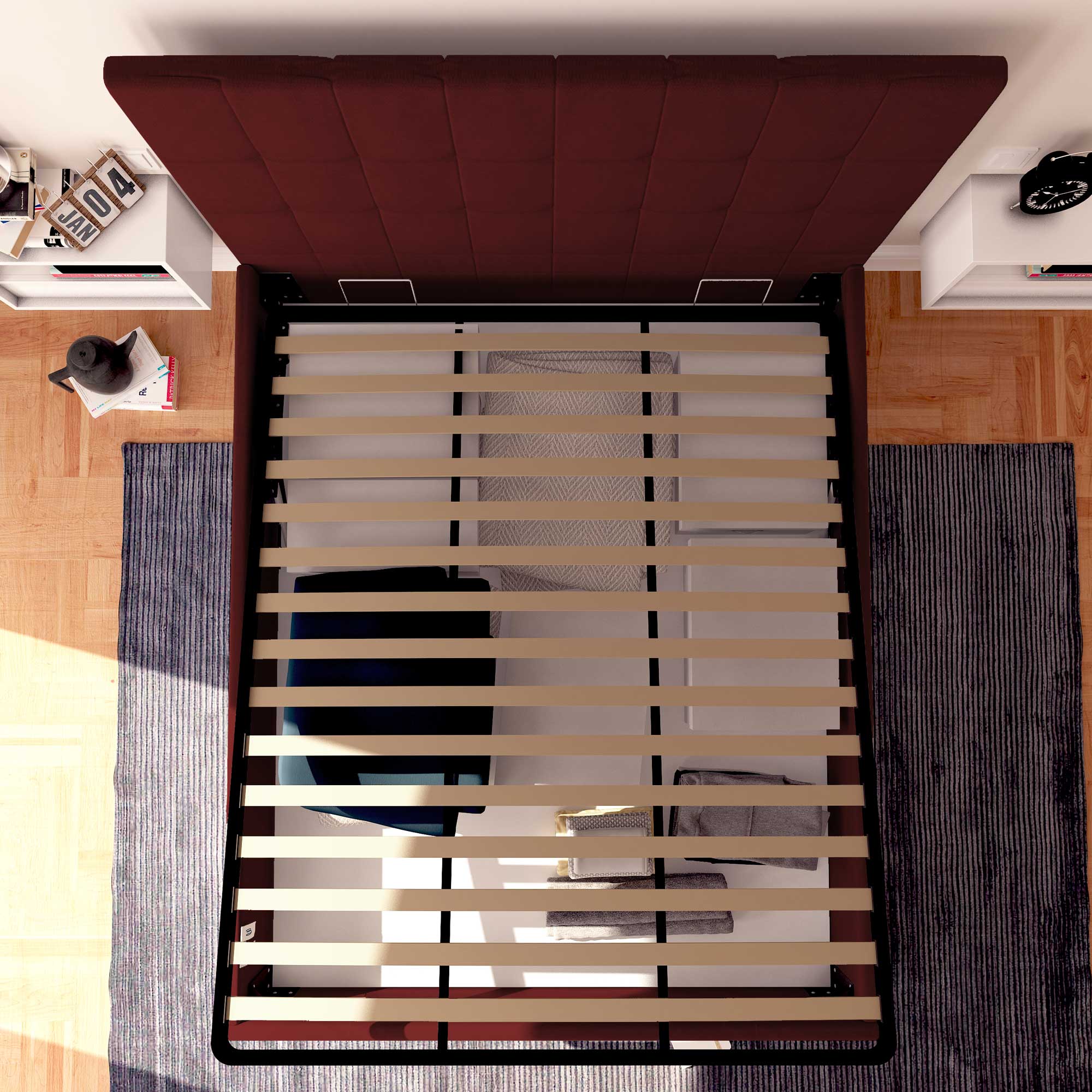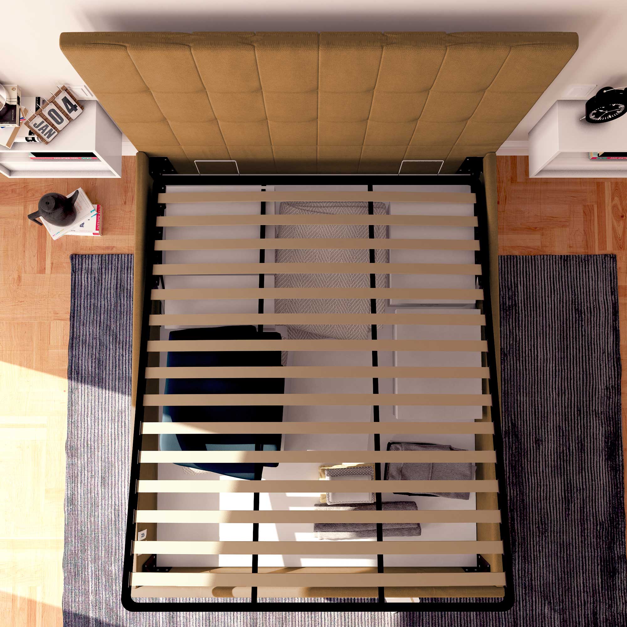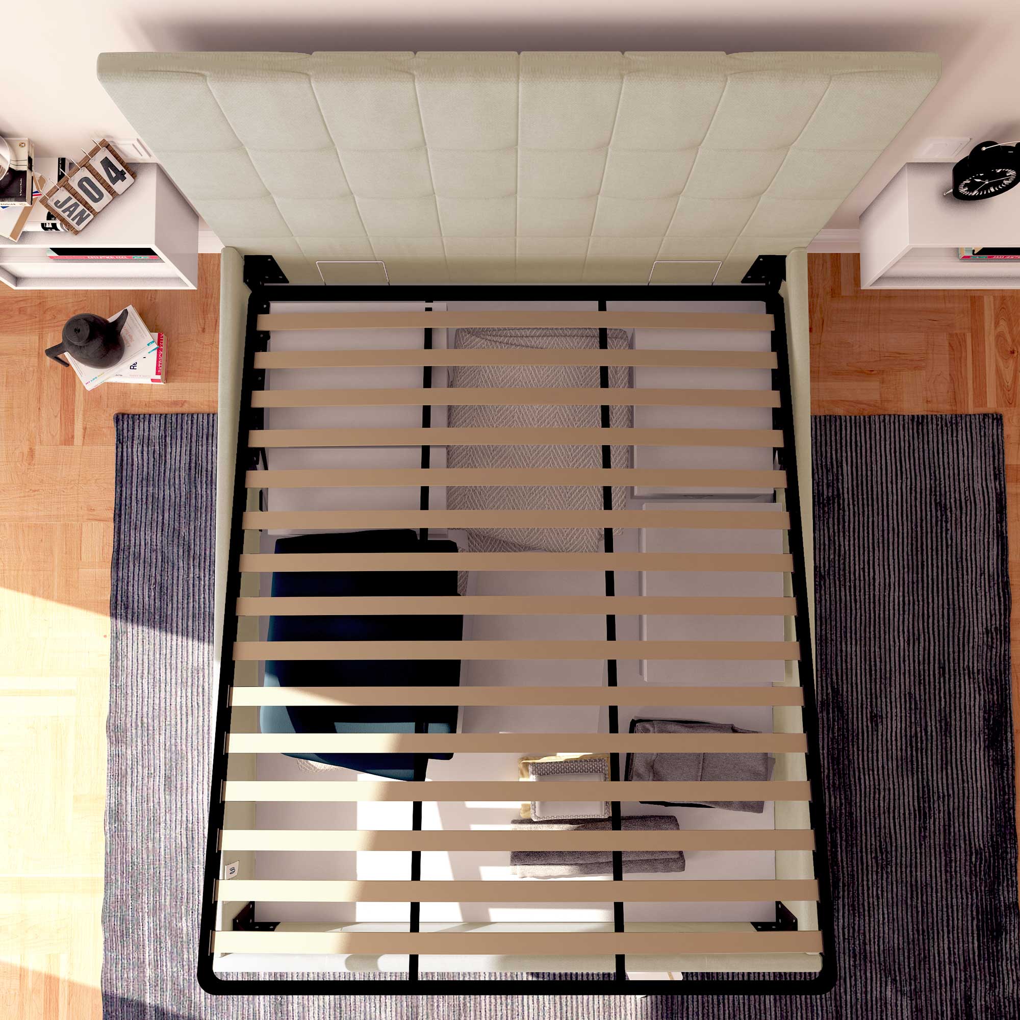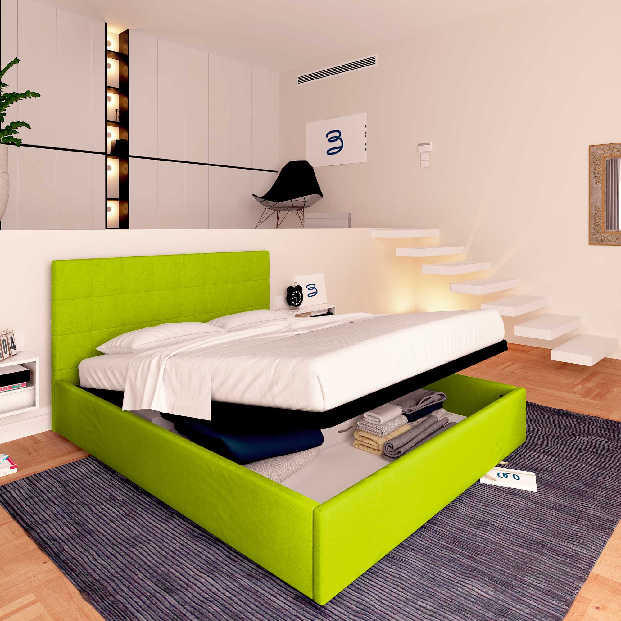 (n.b. Les puissances des systèmes de levage de nos lits coffres sont standardisées en fonction du poids de nos matelas.