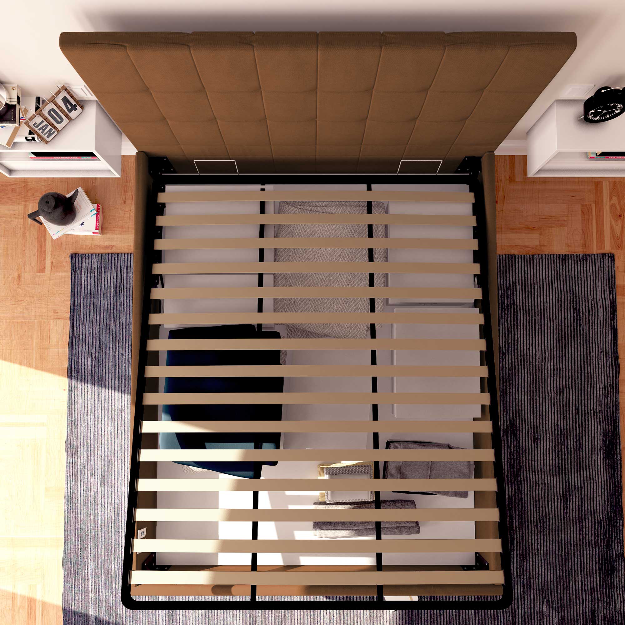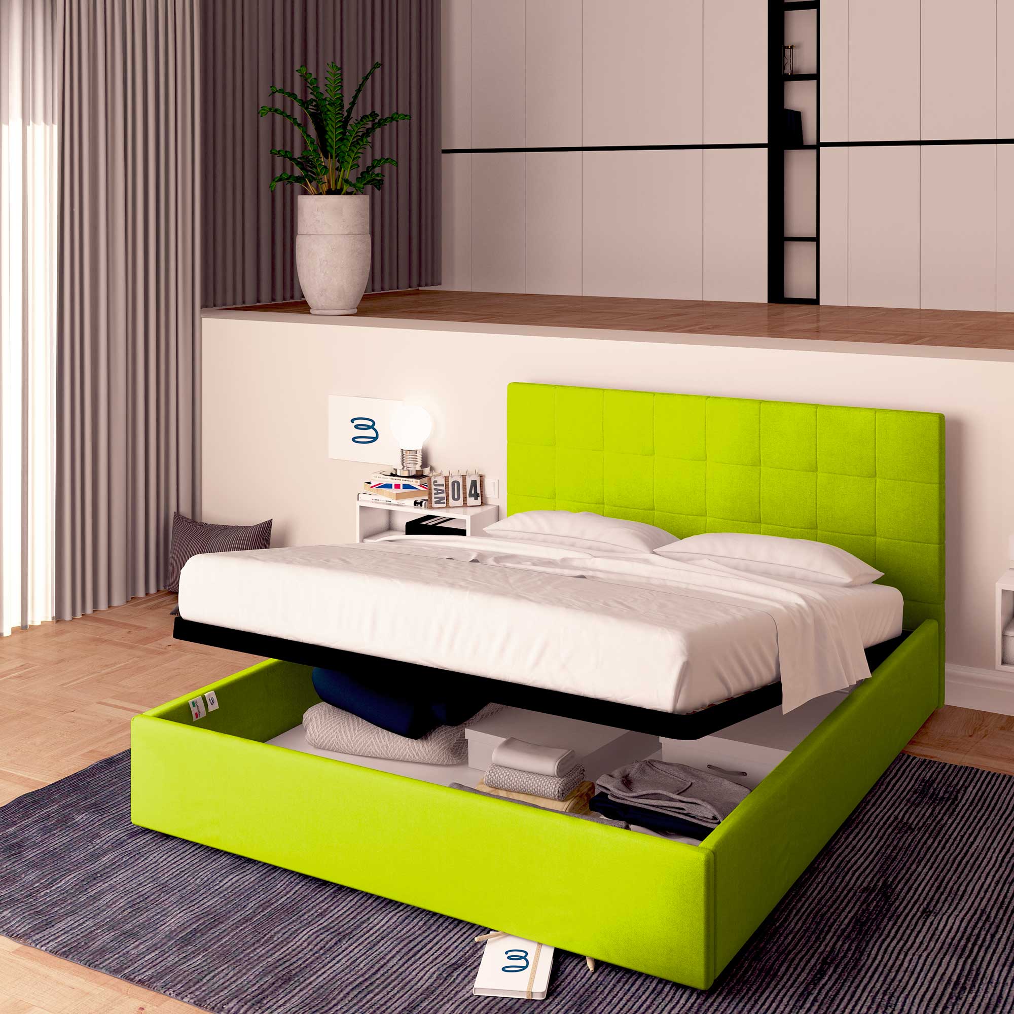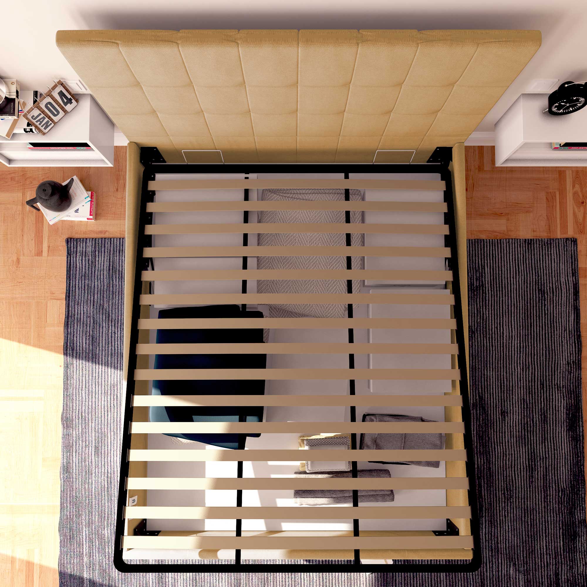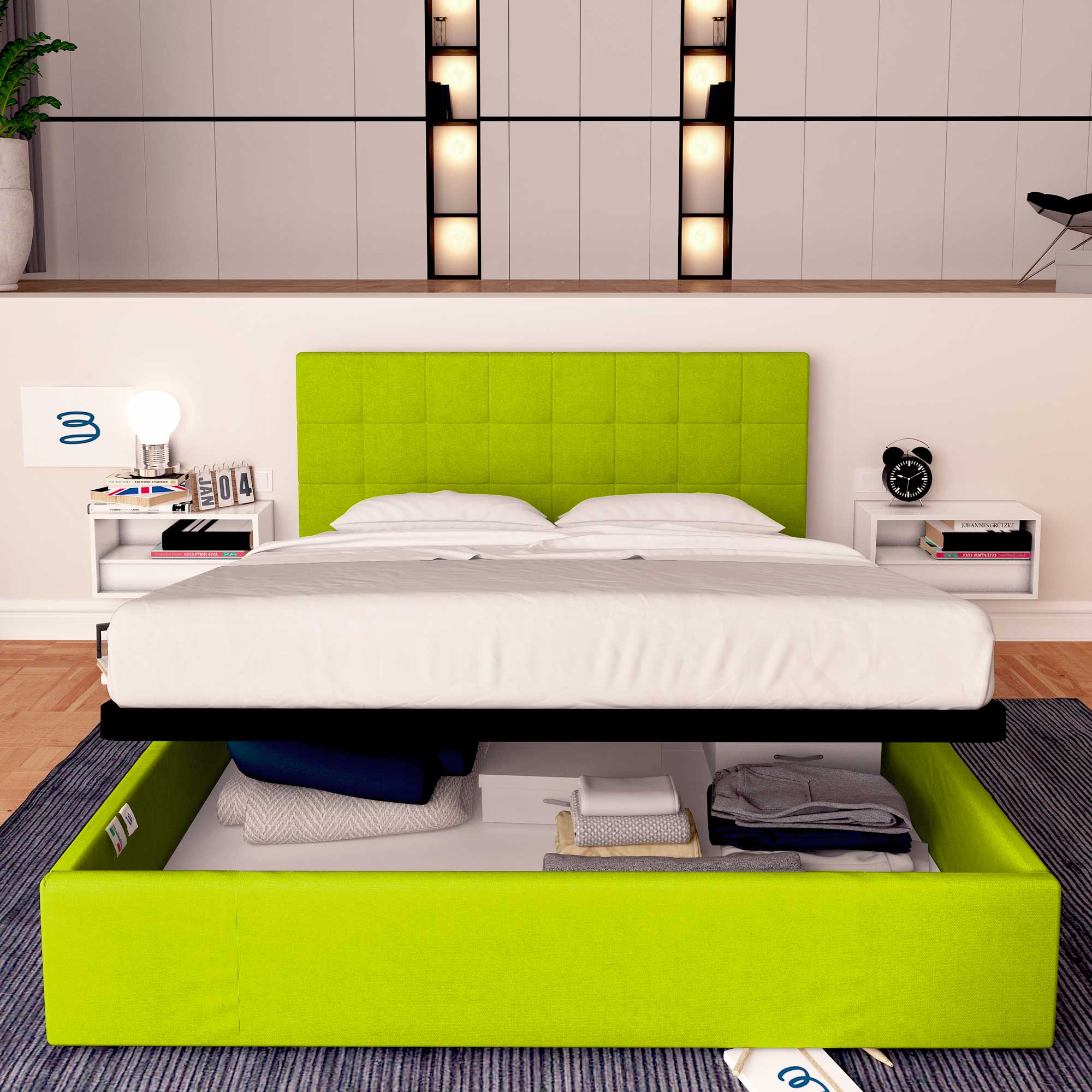 (n.b. Les puissances des systèmes de levage de nos lits coffres sont standardisées en fonction du poids de nos matelas.