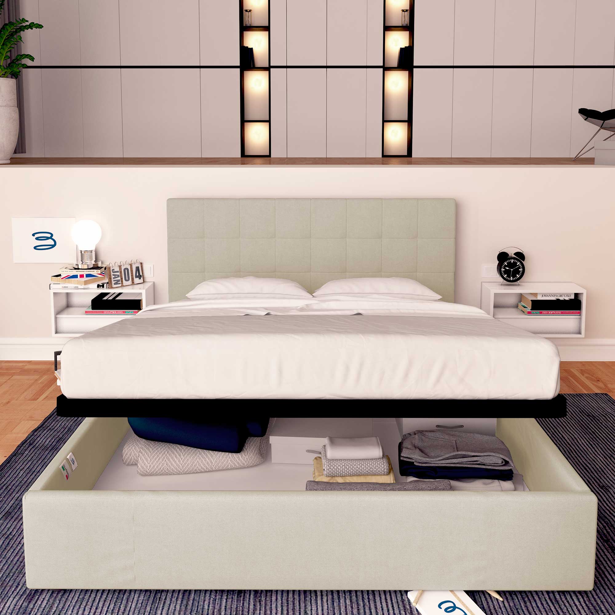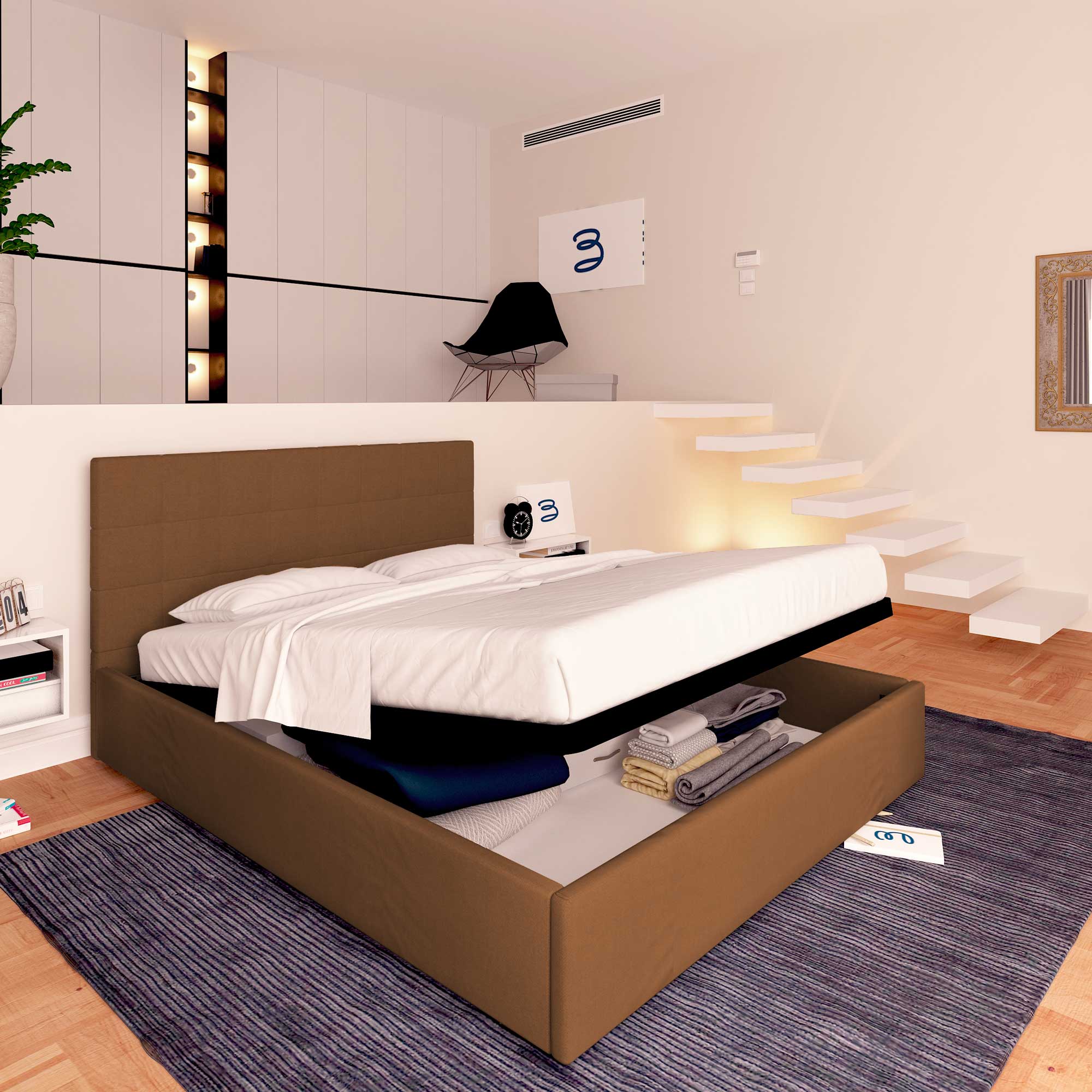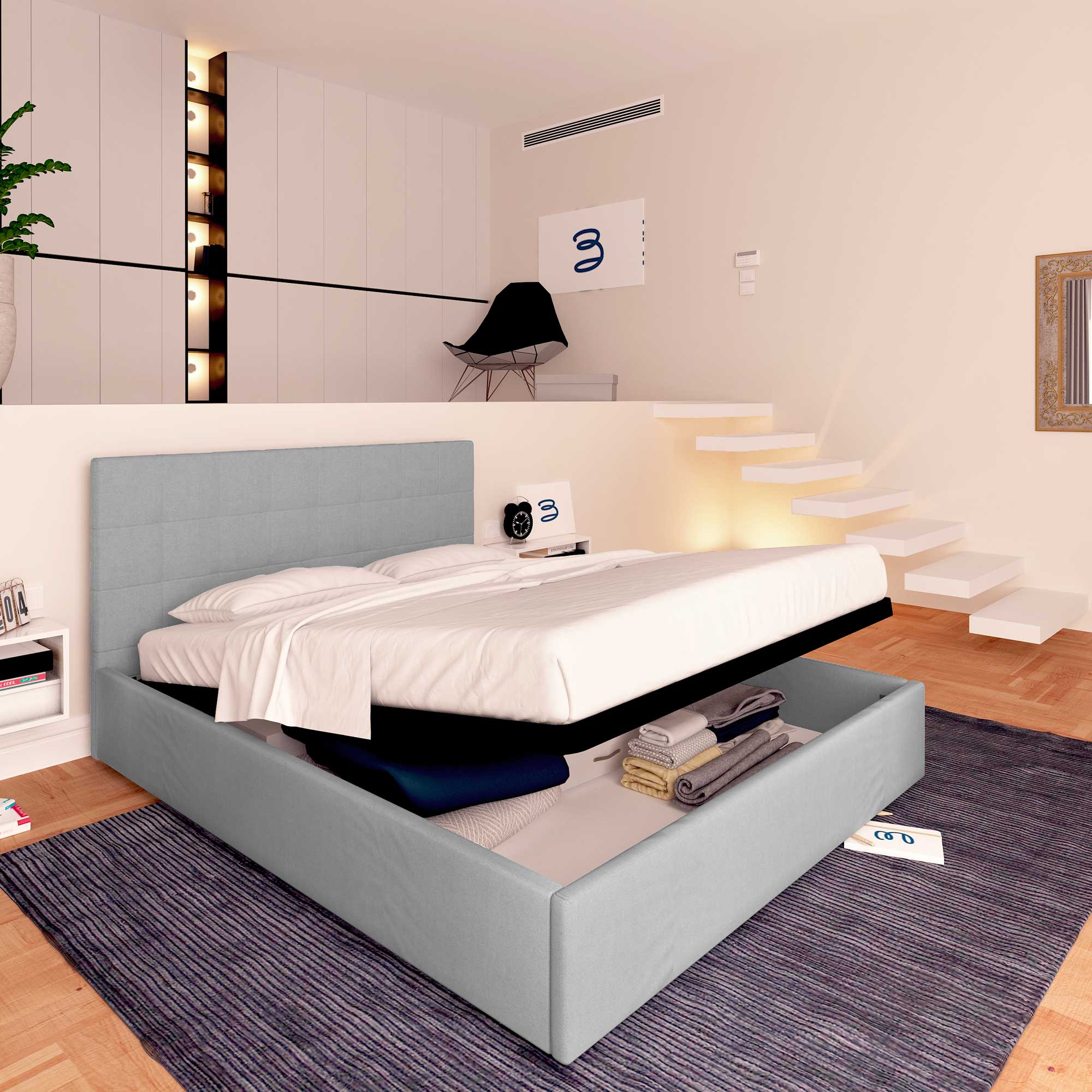 En cas d'achat de la seule structure de lit coffre, il est conseillé de contacter l'assistance pour l'informer du type de matelas en votre possession.)