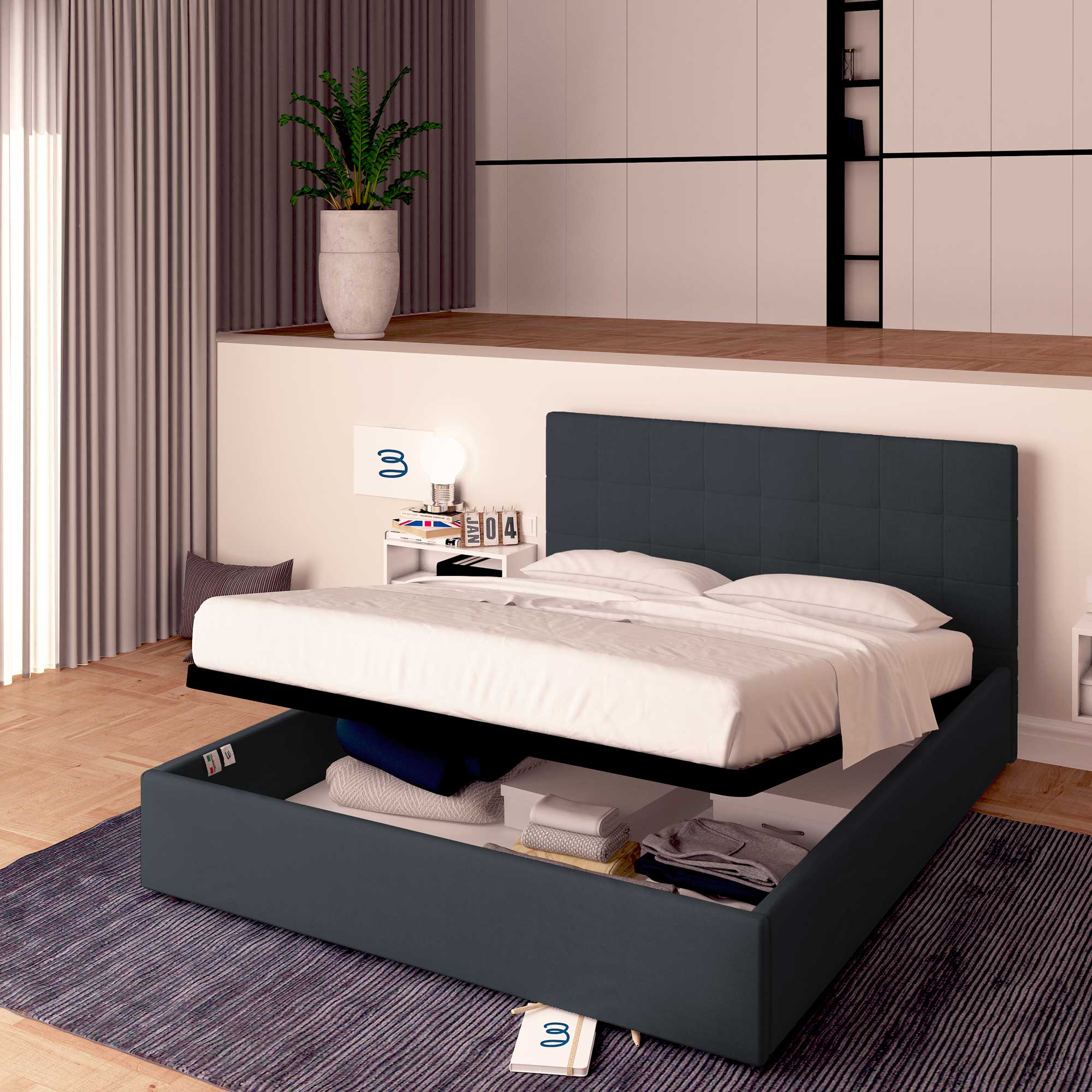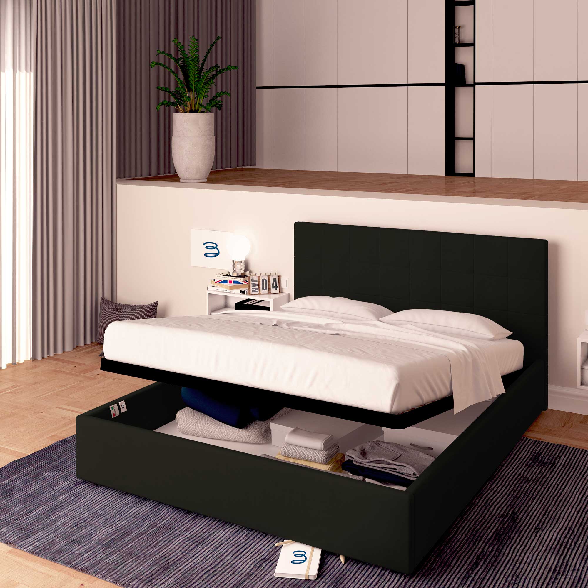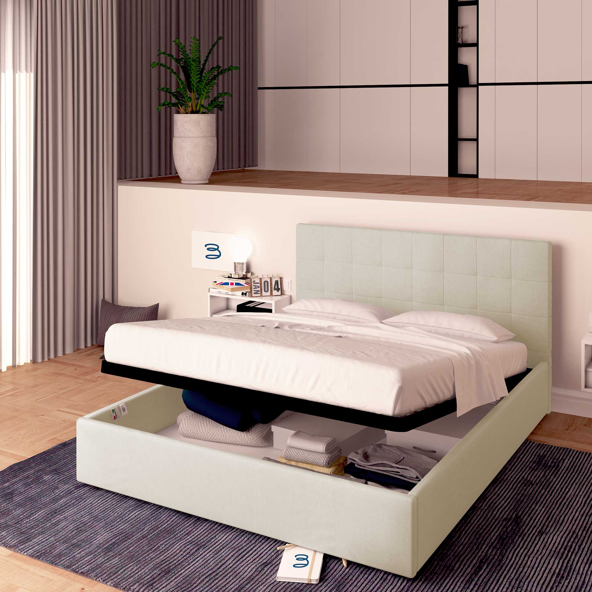 En cas d'achat de la seule structure de lit coffre, il est conseillé de contacter l'assistance pour l'informer du type de matelas en votre possession.)