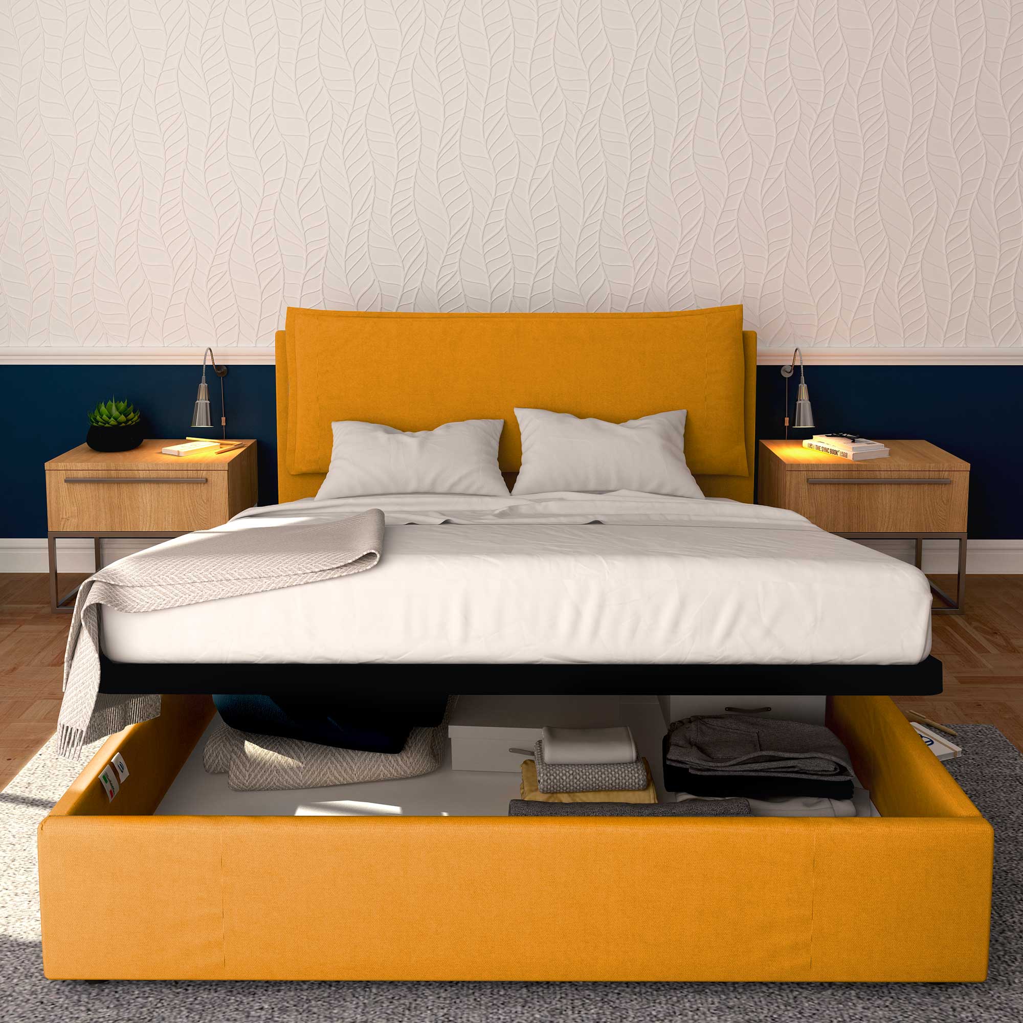 Caractéristiques du lit coffre double en tissu déhoussable Giuliano