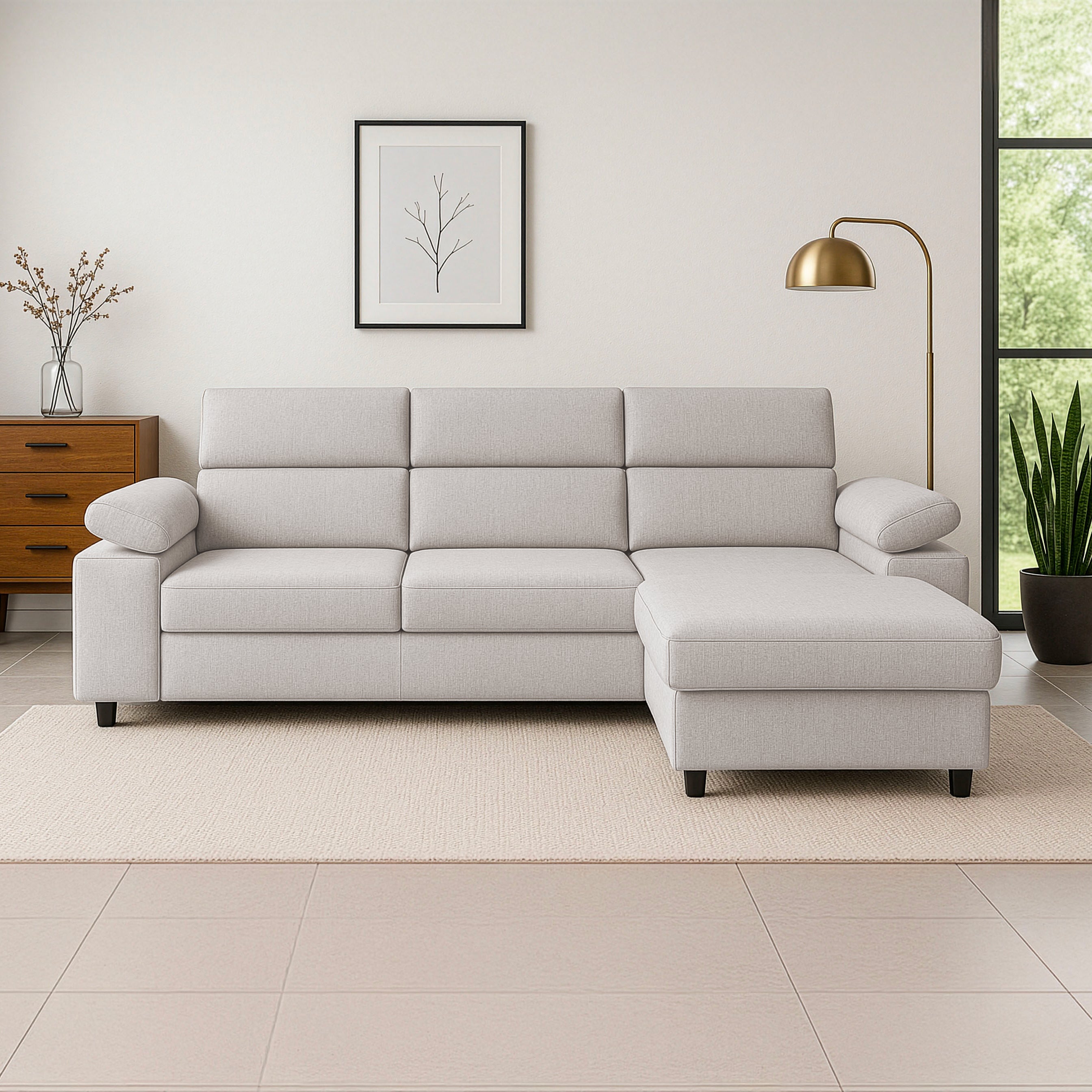 Con Angel porti a casa un divano letto angolare con penisola dal design essenziale e raffinato, creato per offrire comfort quotidiano e praticità quando serve un posto letto in più. Un divano che unisce stile e funzionalità, pensato per resistere nel tempo senza rinunciare all’eleganza.
