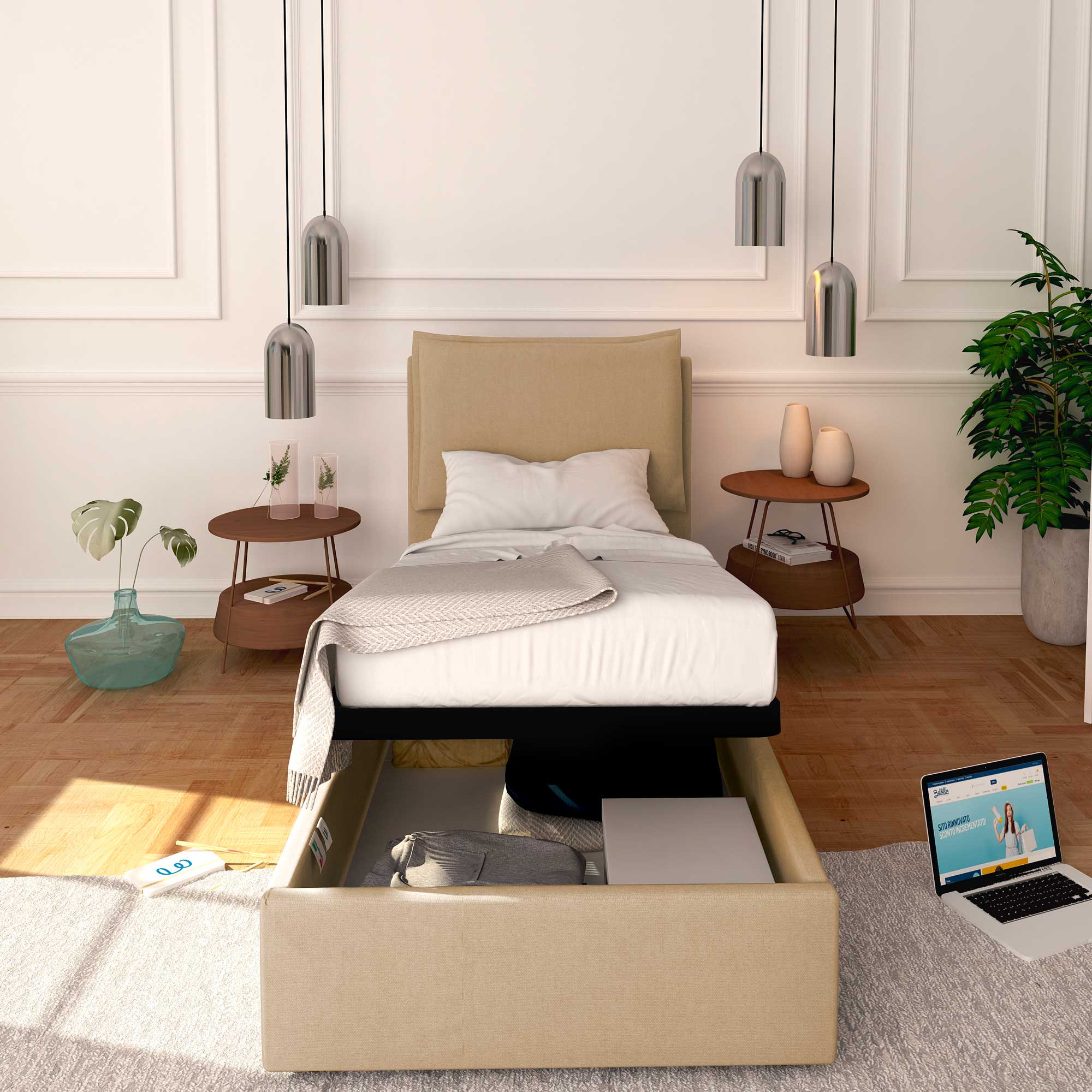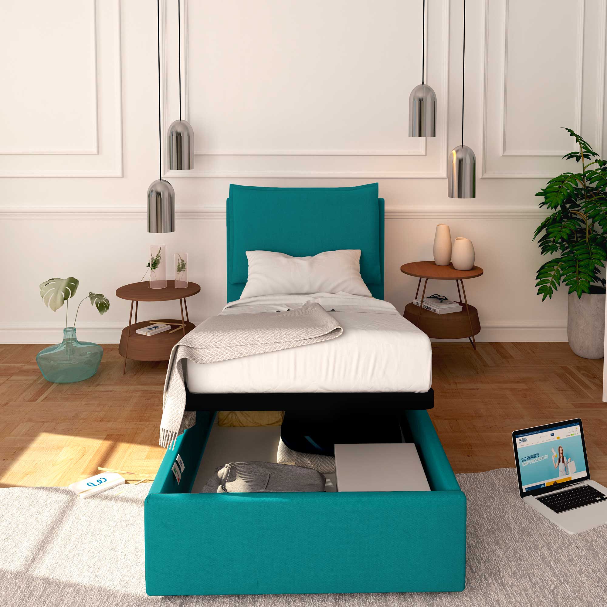 • Letto contenitore singolo in tessuto sfoderabile Licia