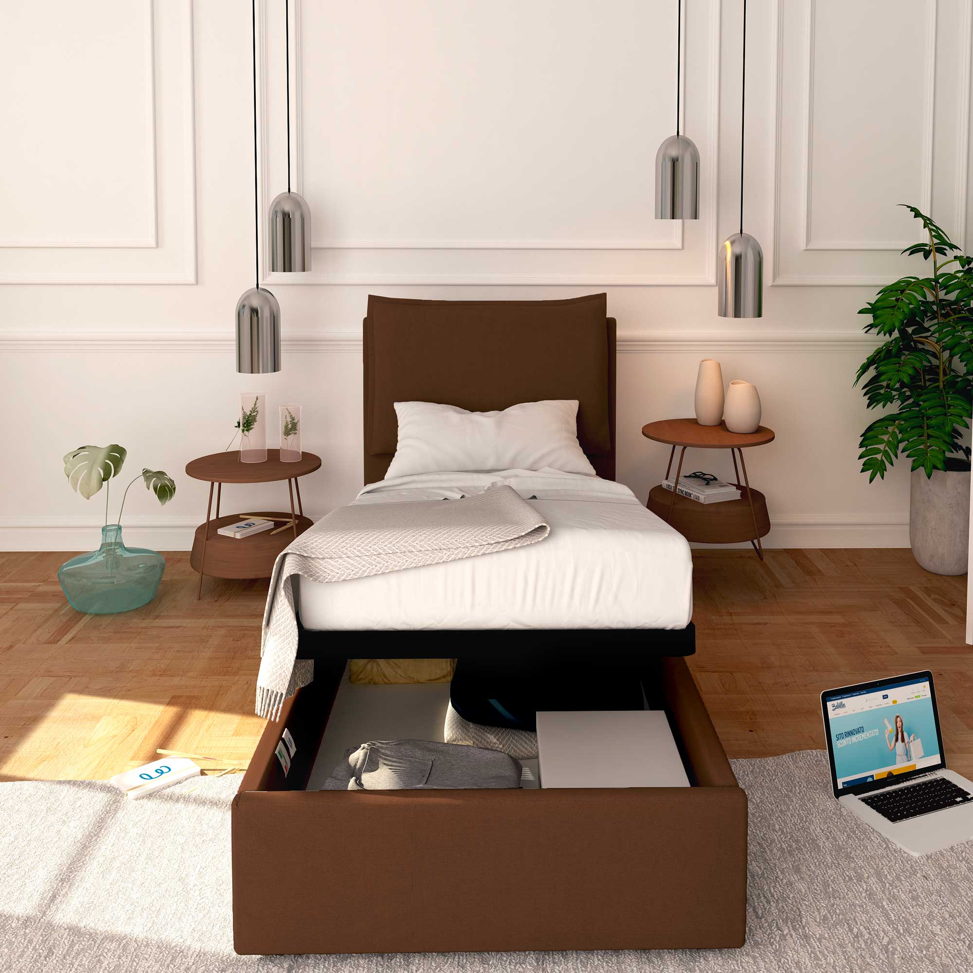 • Baldiflex letto contenitore singolo in tessuto sfoderabile Licia marrone