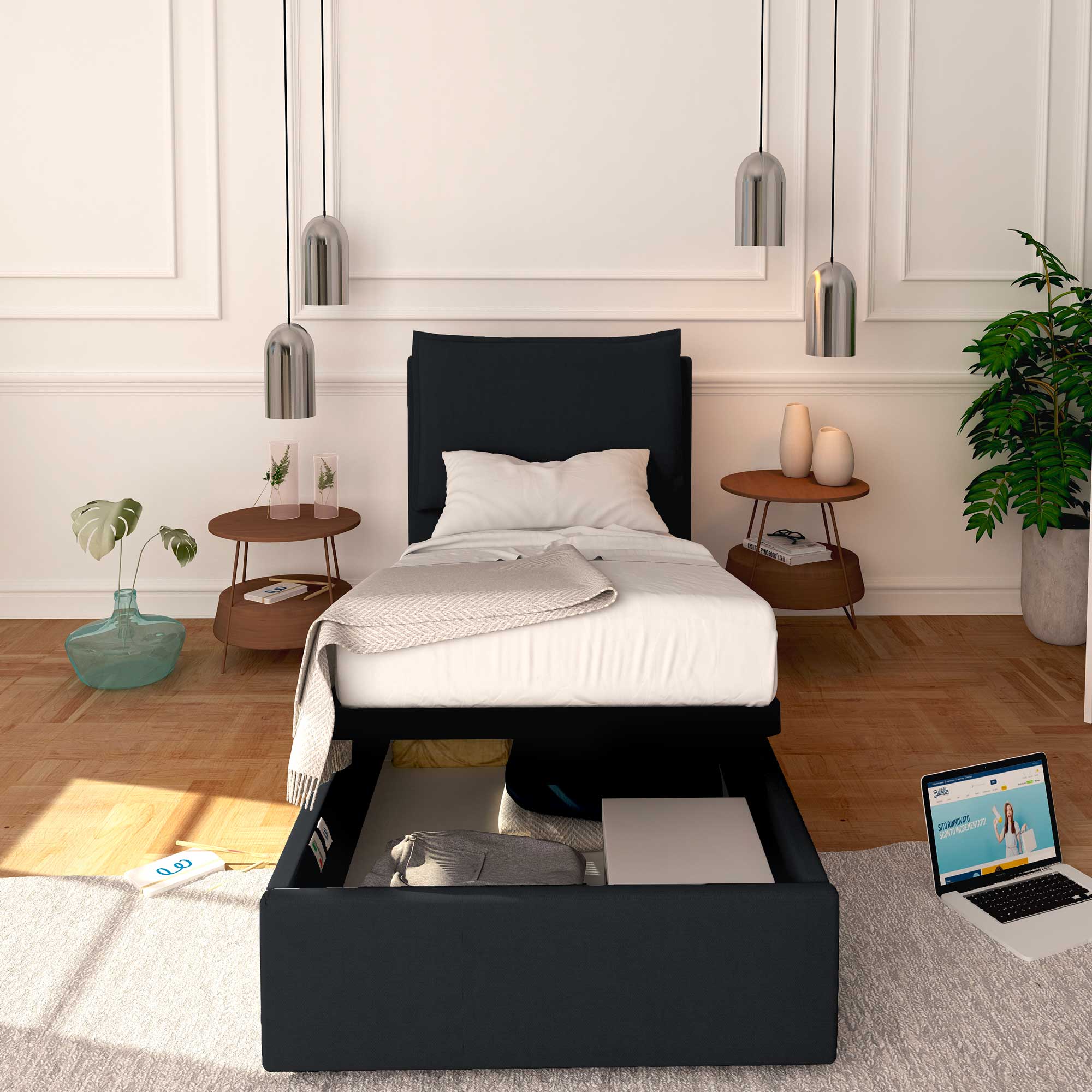 • Baldiflex letto contenitore singolo in tessuto sfoderabile Licia nero