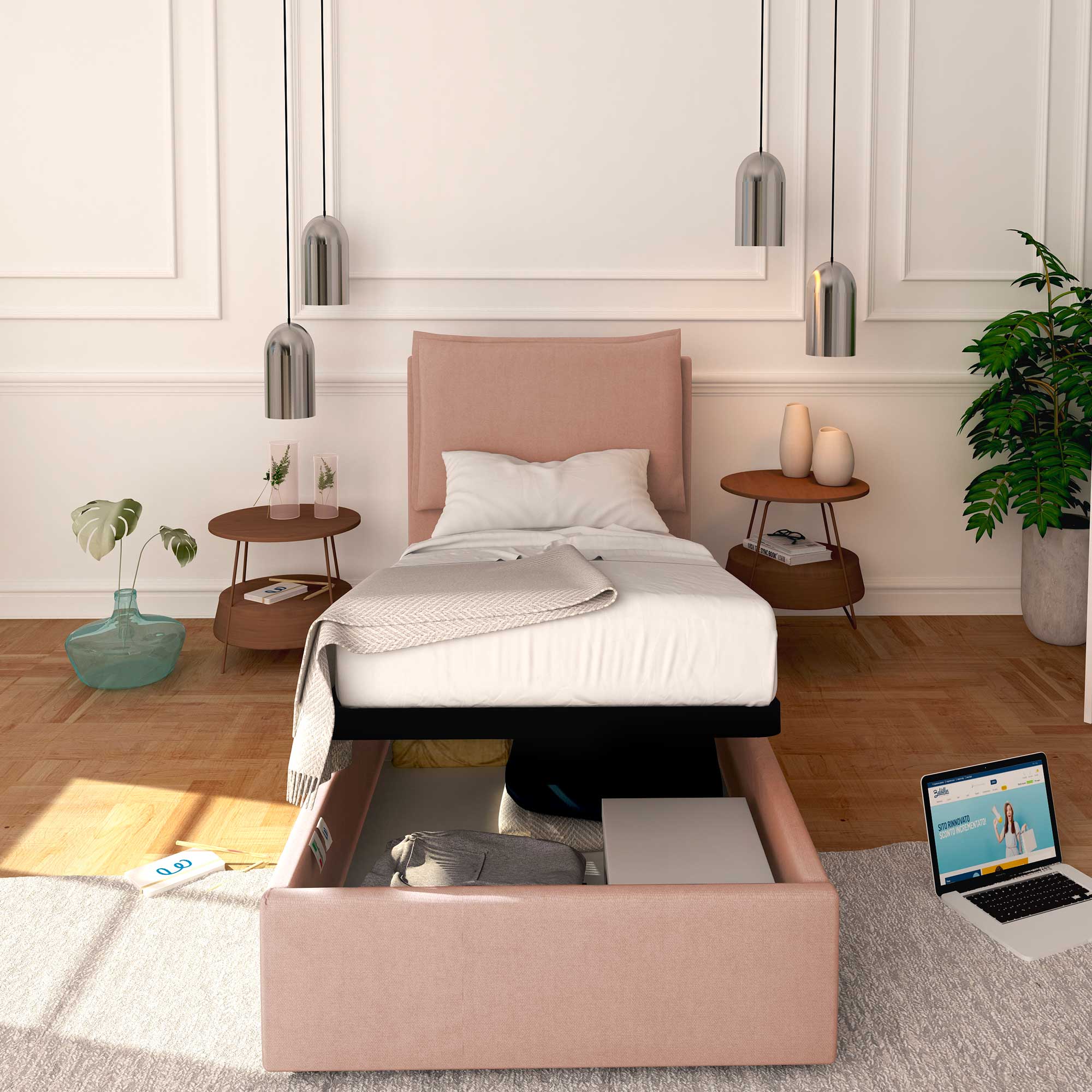 • Baldiflex letto contenitore singolo in tessuto sfoderabile Licia rosa antico