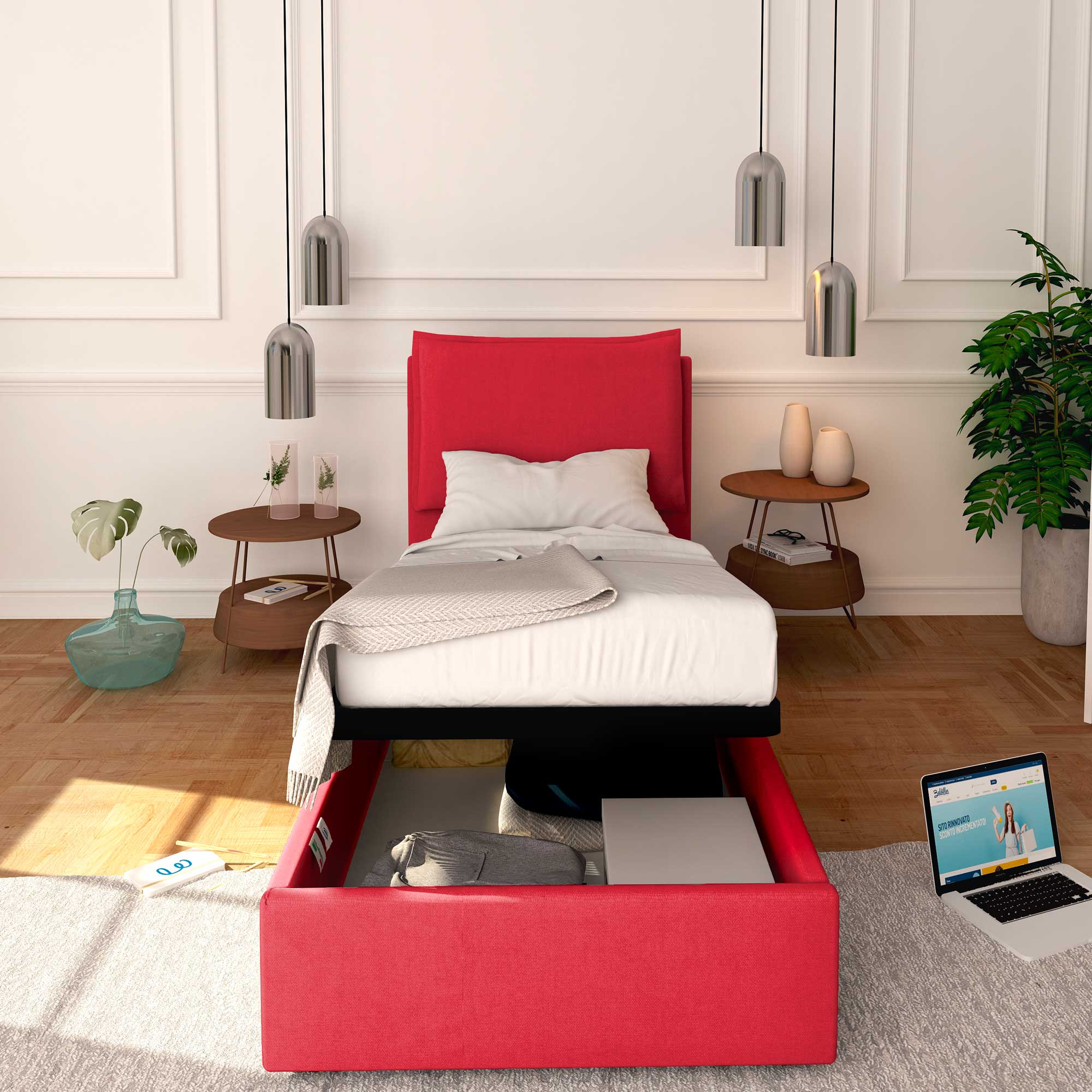 • Baldiflex letto contenitore singolo in tessuto sfoderabile Licia rosso